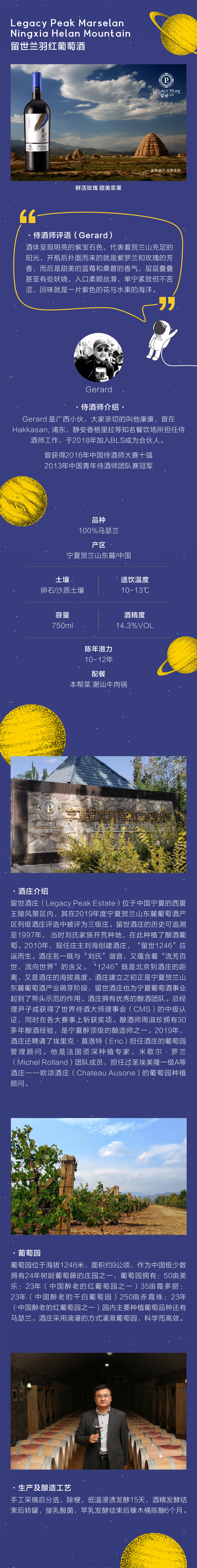 留世兰羽马瑟兰红葡萄酒Legacy Peak Marselan Ningxia Helan Mountain 2019