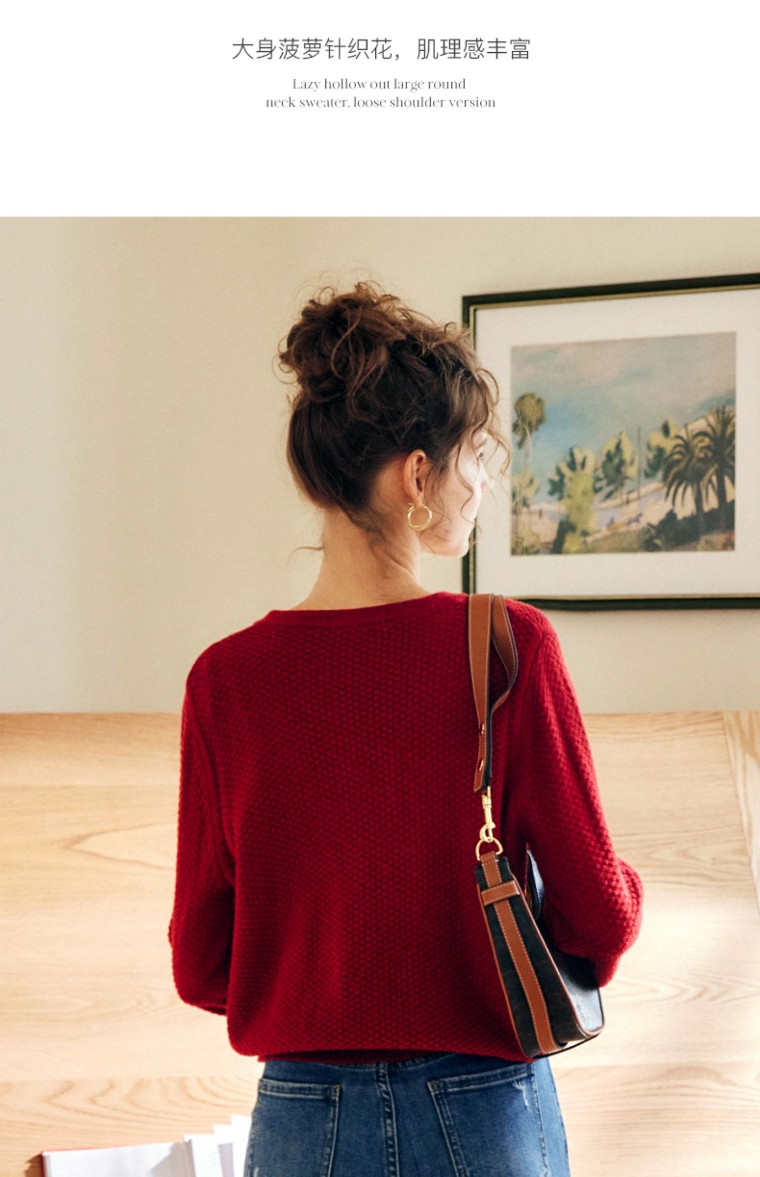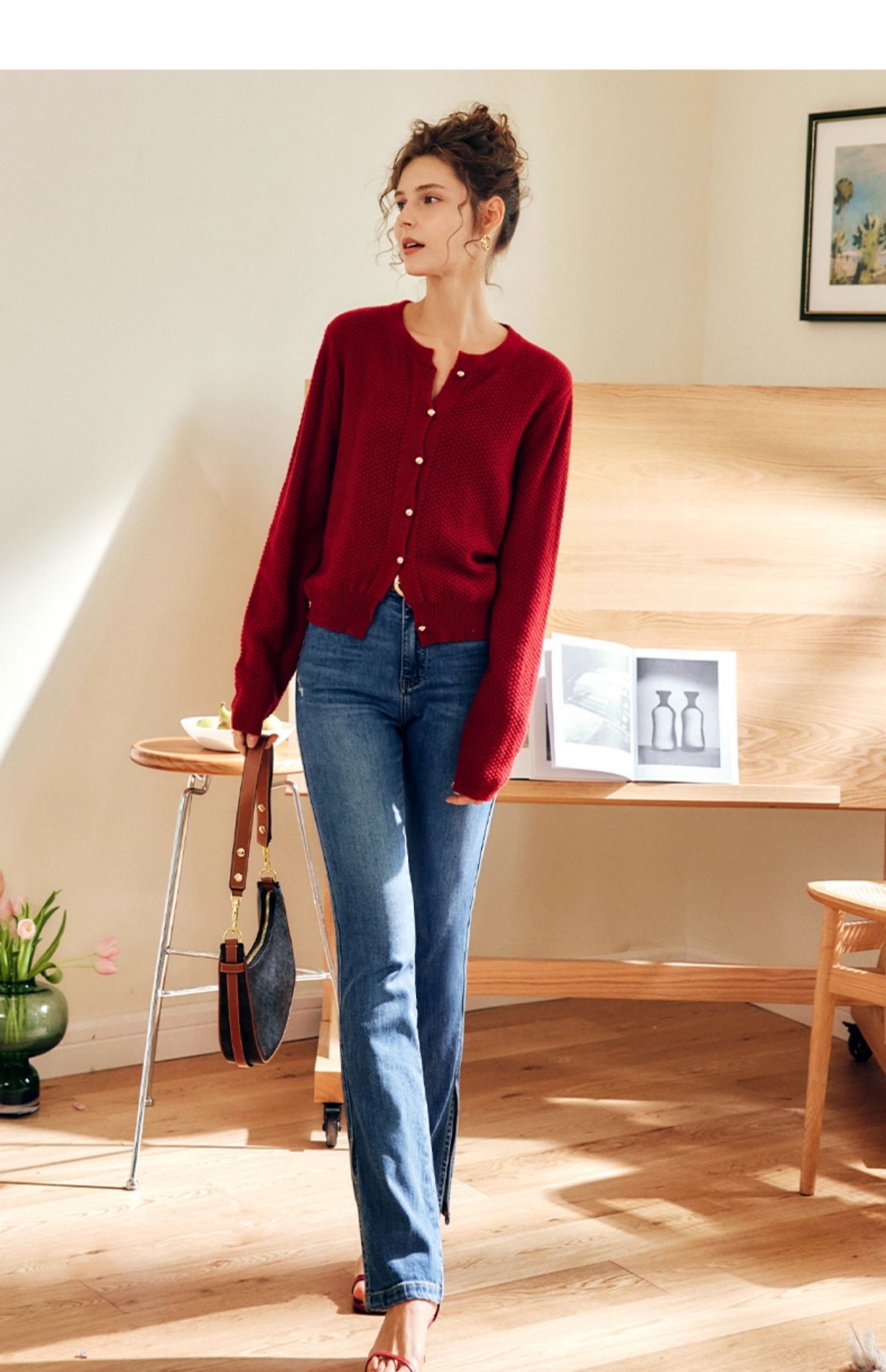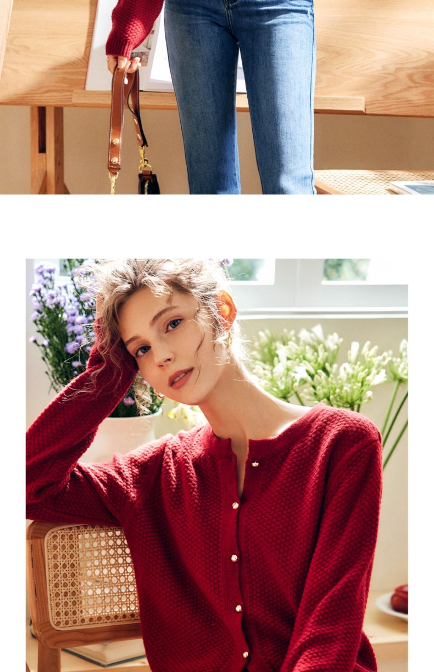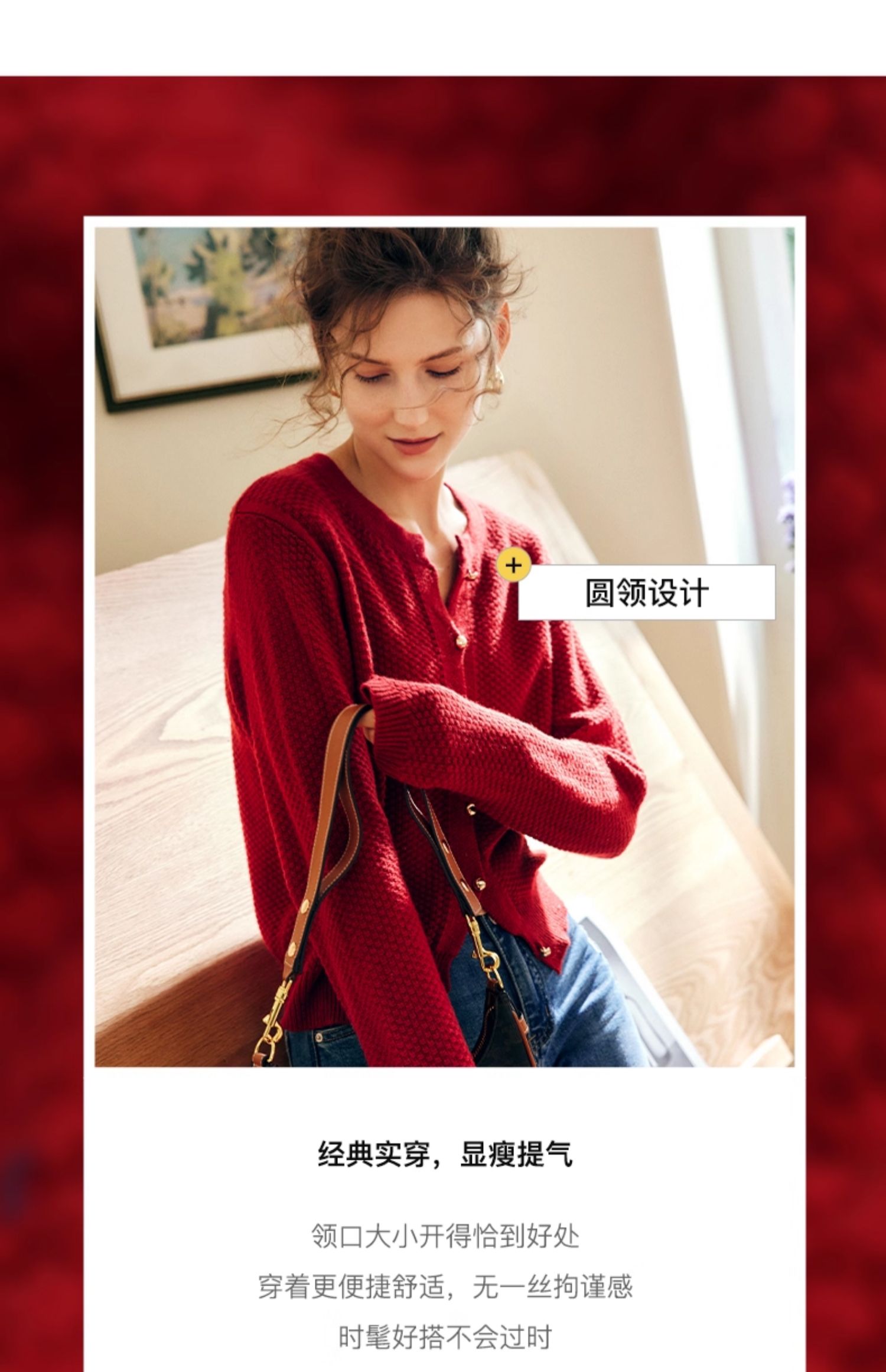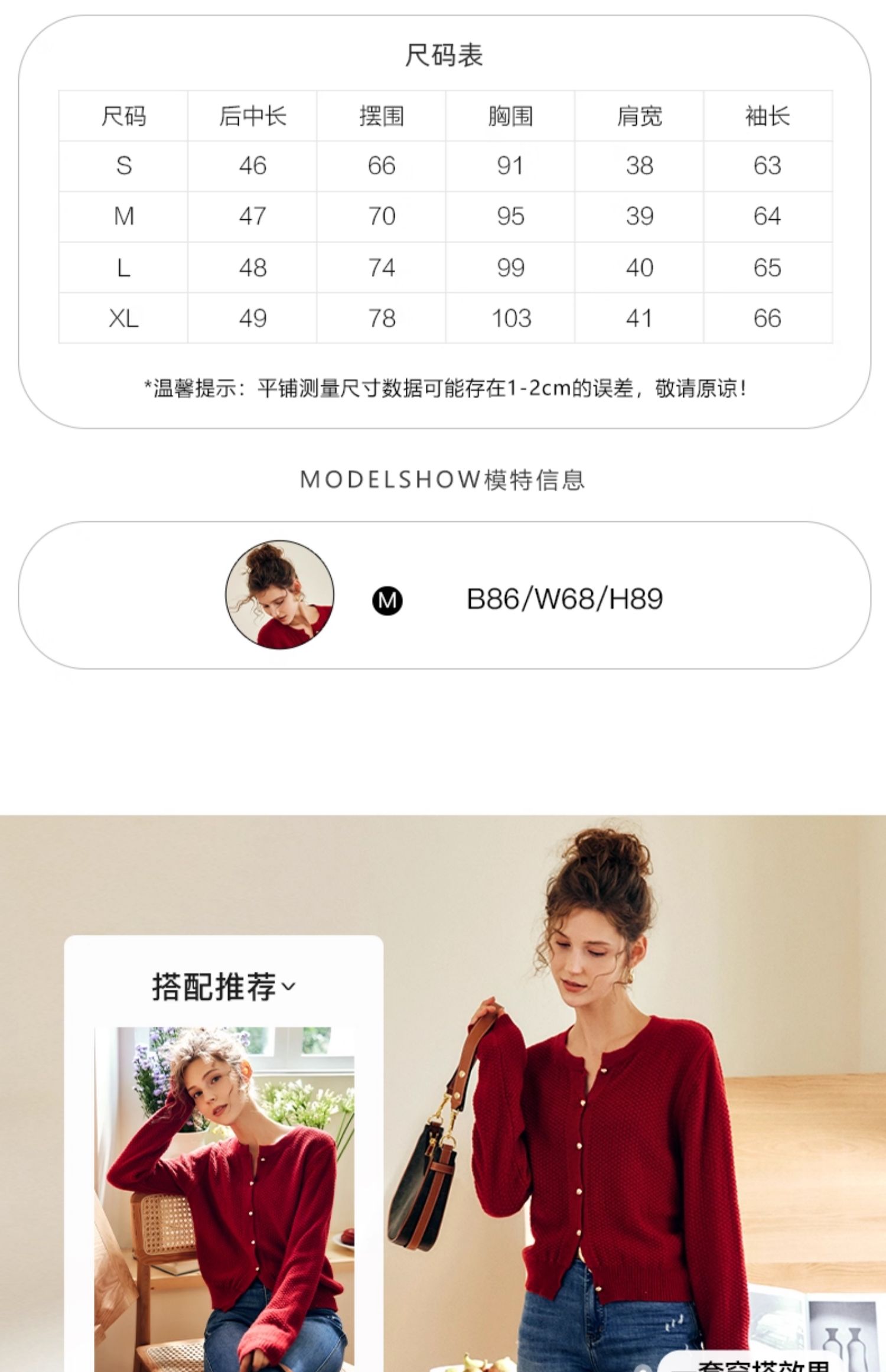欧芮儿法式酒红色针织毛衣开衫女秋季2025新款复古外套新年慵懒风