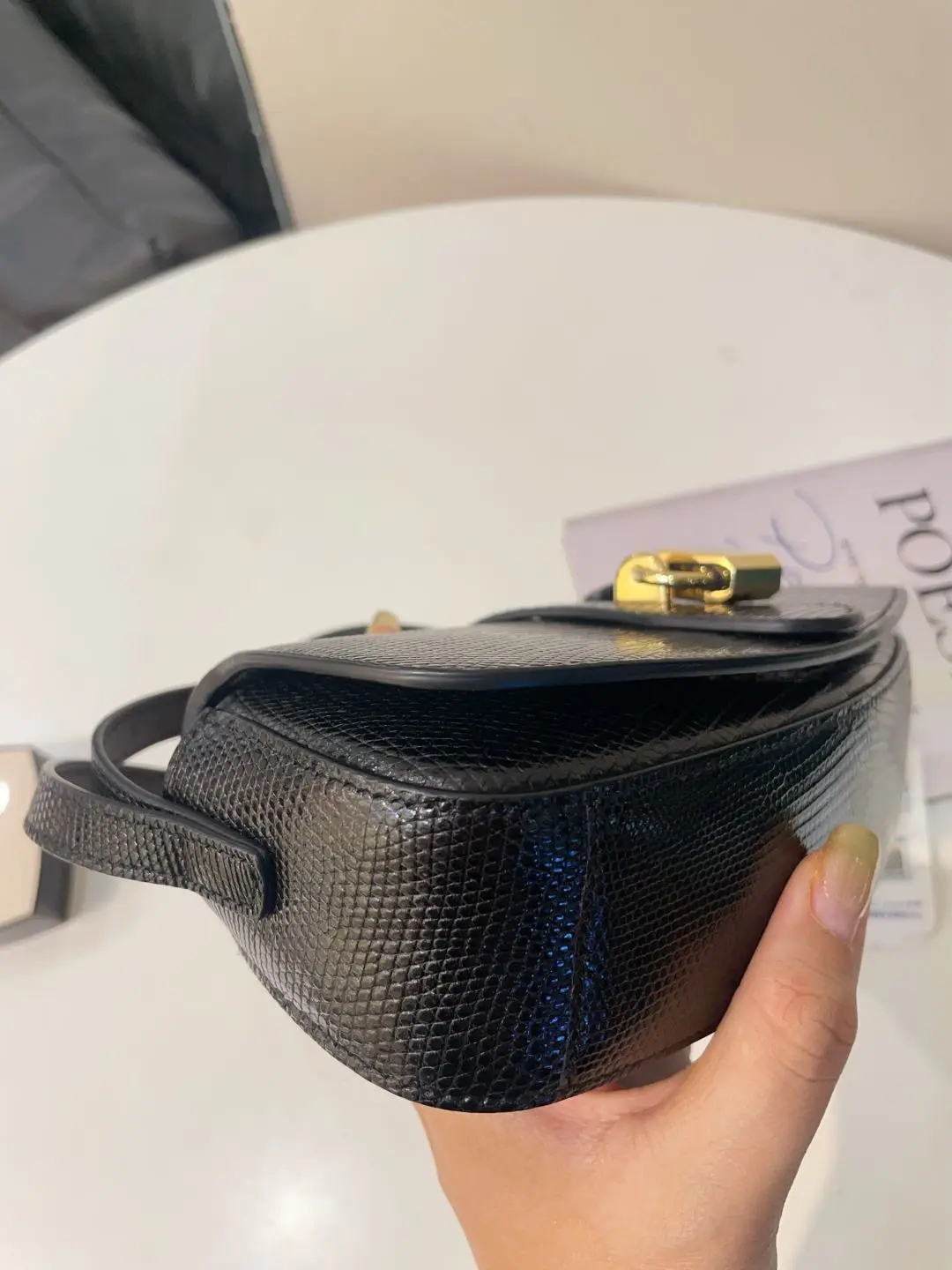 【商品详情】正品二手 Celine TABOU 黑色 蜥蜴皮 锁头 腋下包🦎 95新 18*12。蜥蜴皮质感 复古时髦