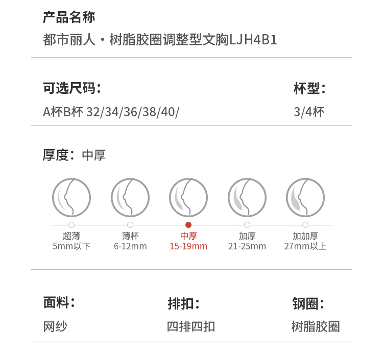 【代言人同款】都市丽人水光杯调整型文胸软尺码中厚网纱舒软挺塑树脂胶圈塑身文胸LJH4B1