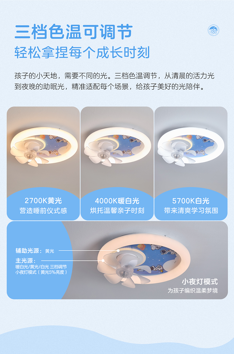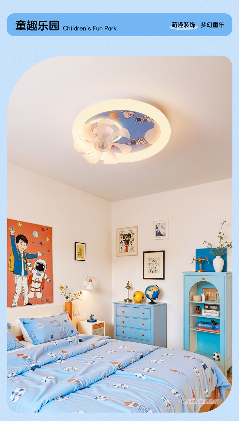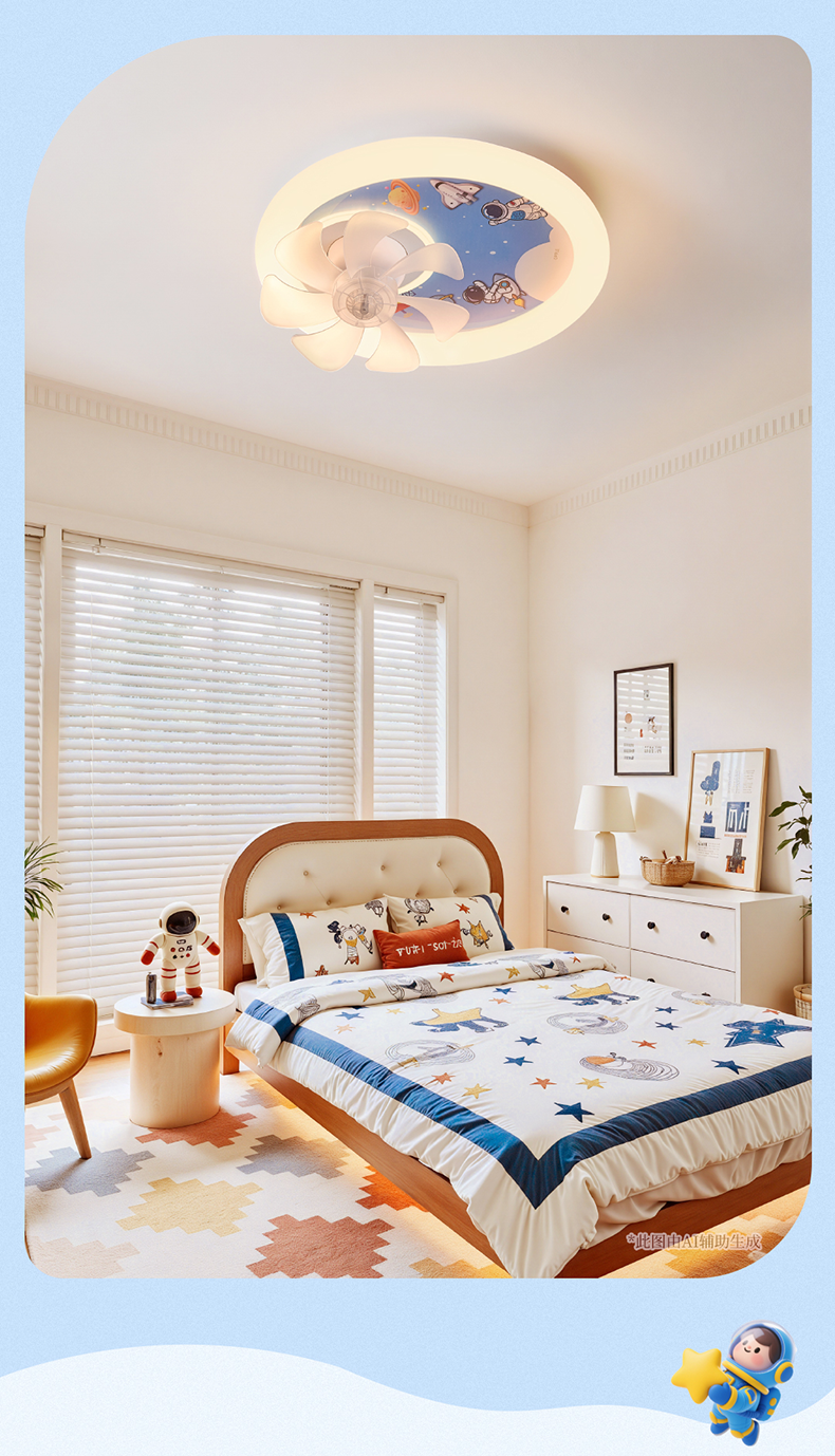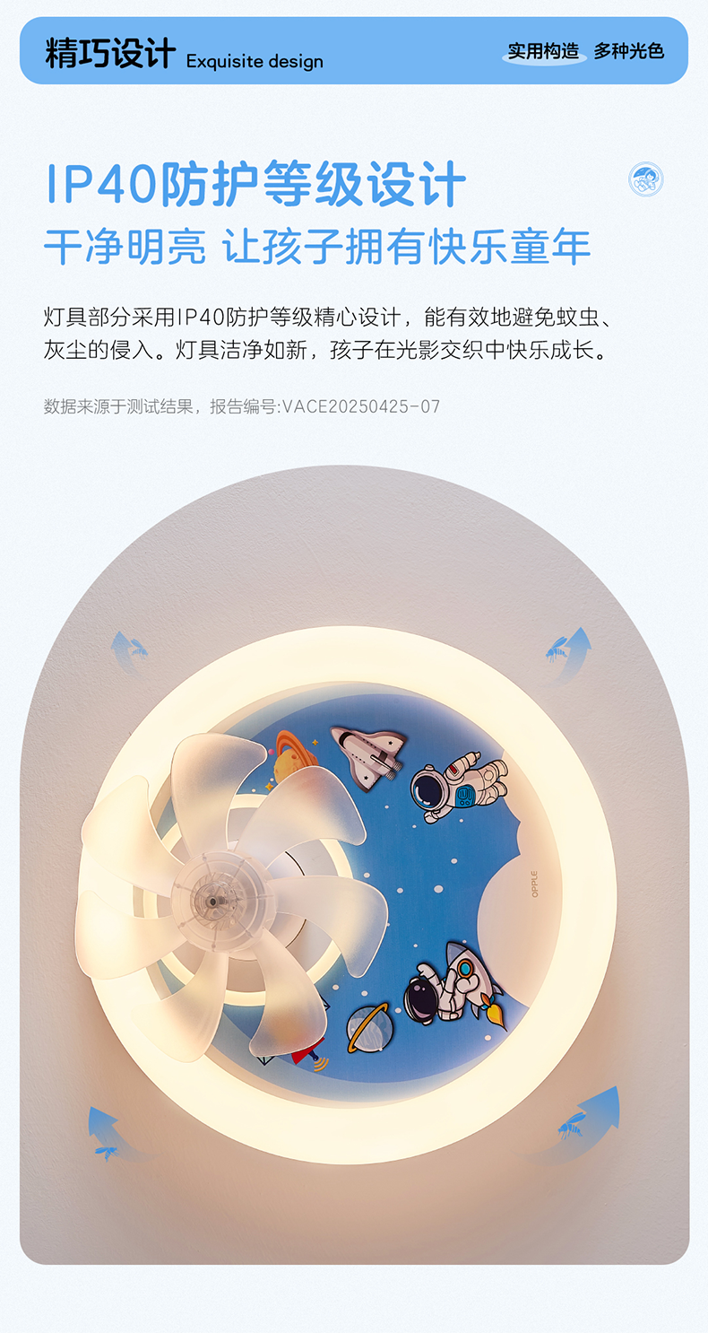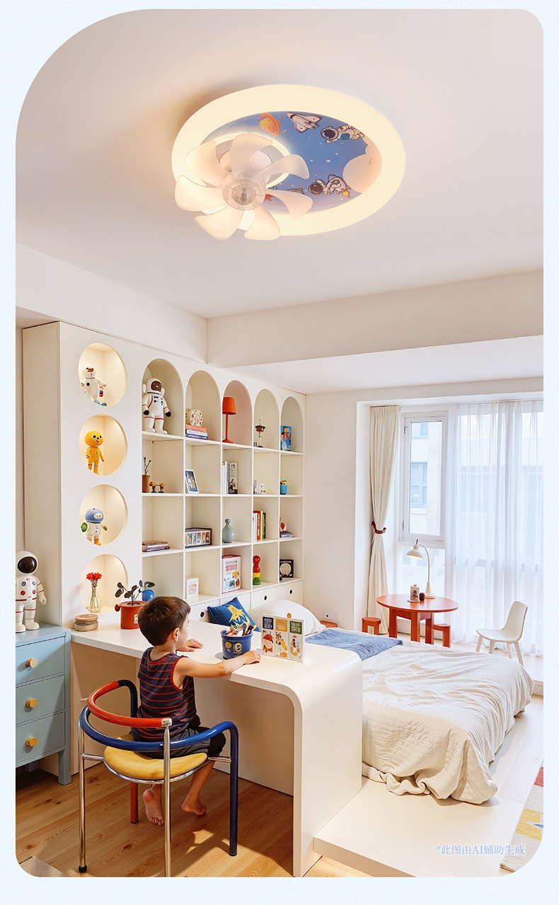 欧普(OPPLE)风趣B全光谱奶油风儿童房卧室吸顶风扇灯