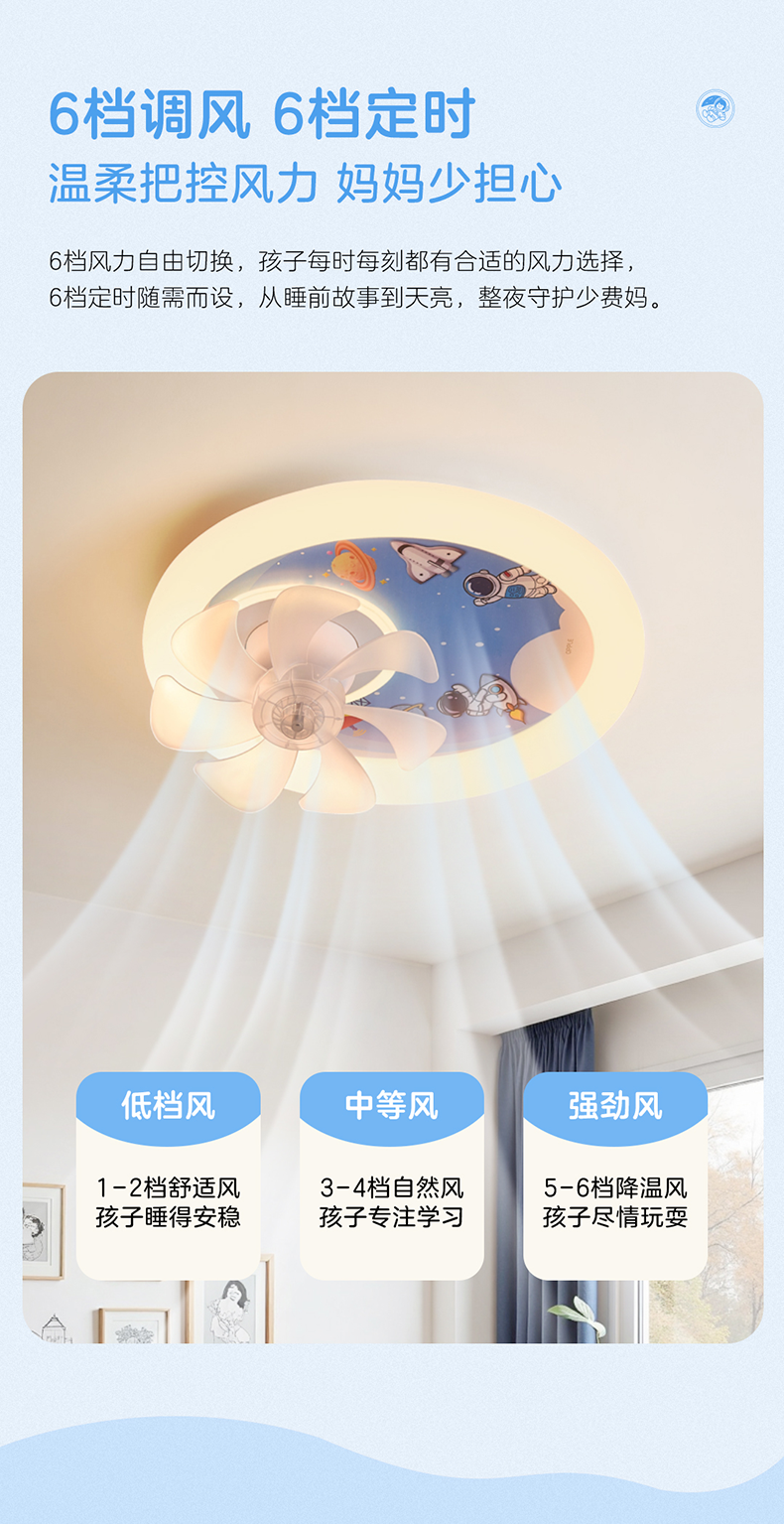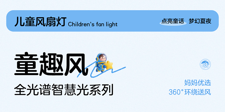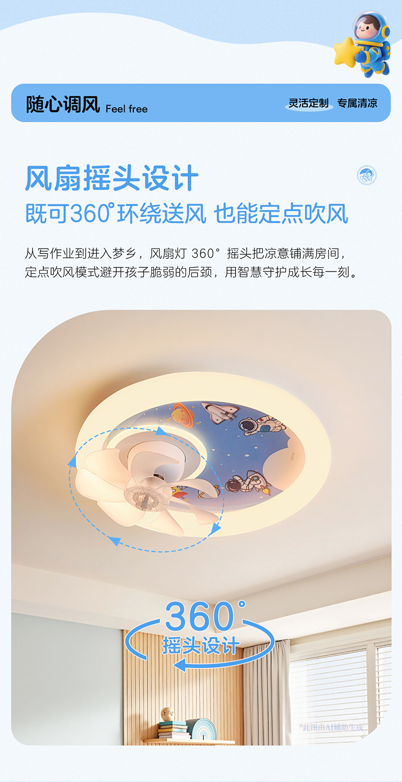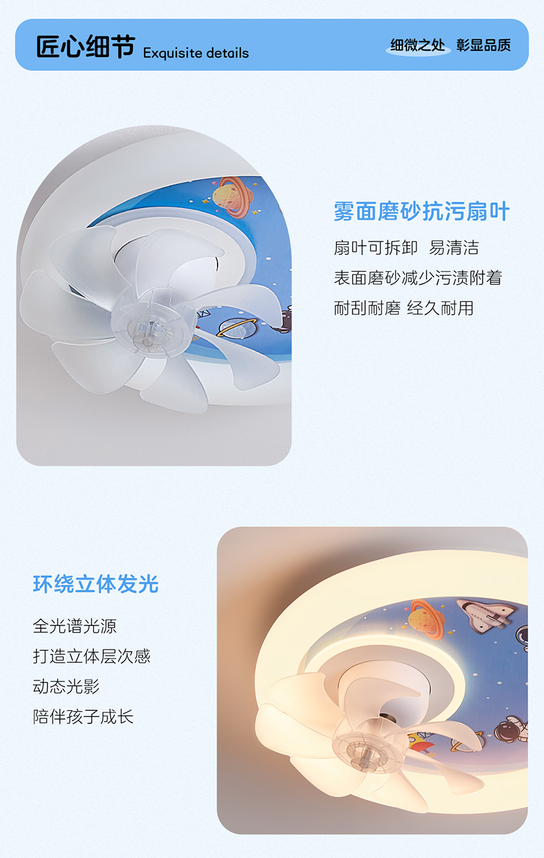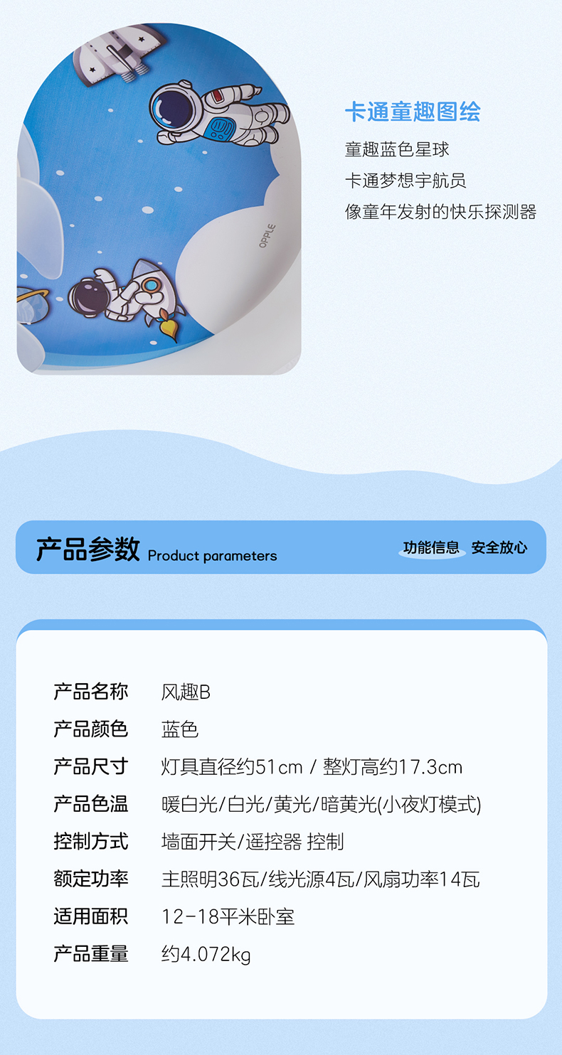 欧普(OPPLE)风趣B全光谱奶油风儿童房卧室吸顶风扇灯