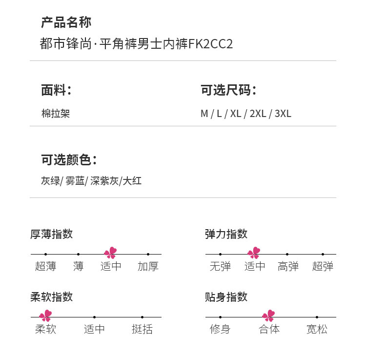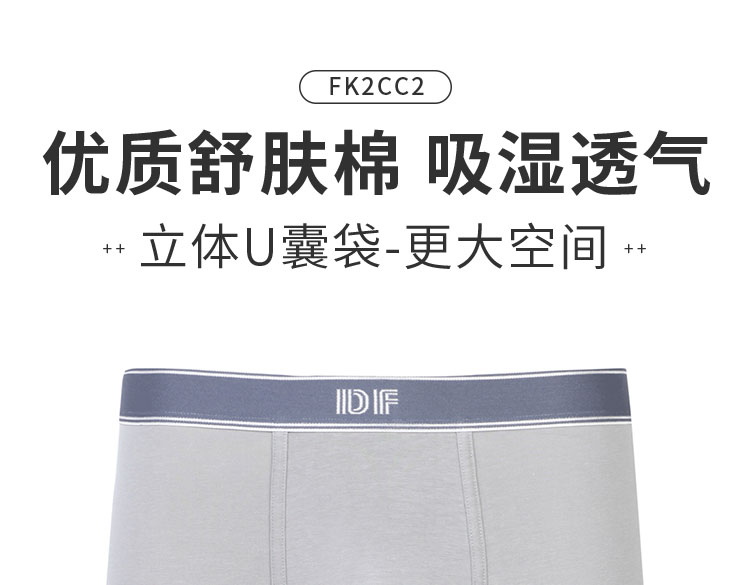 都市丽人都市锋尚简约基础棉平角棉拉架单品内裤平角裤男士内裤FK2CC2