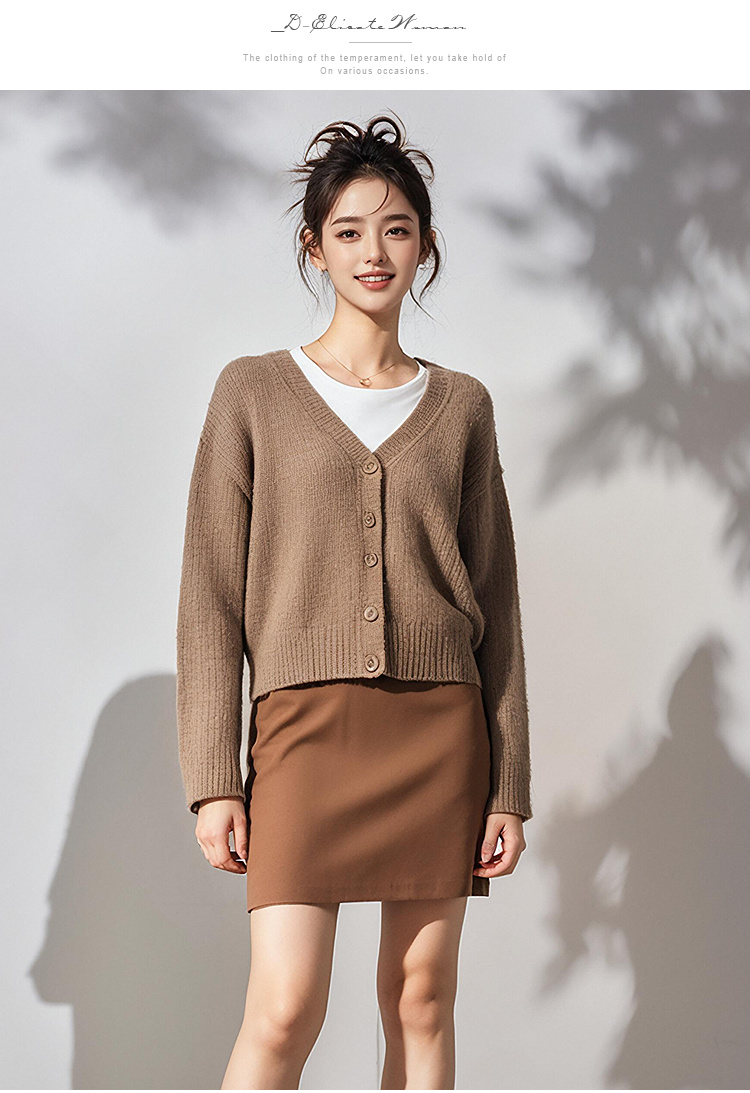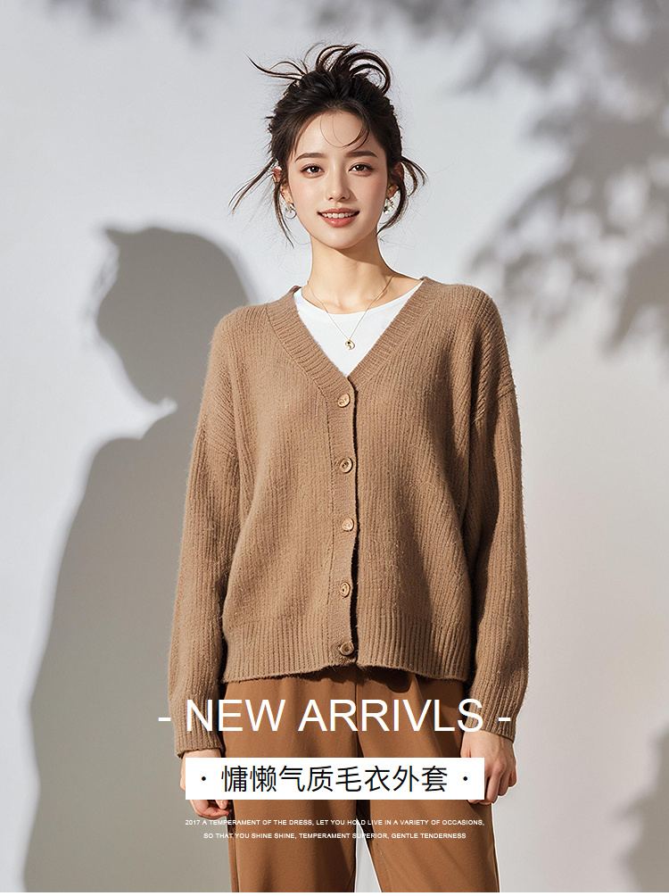 奢姿2025年春季新款大码女装复古慵懒风上衣胖妹妹V领毛衣外套9844355945