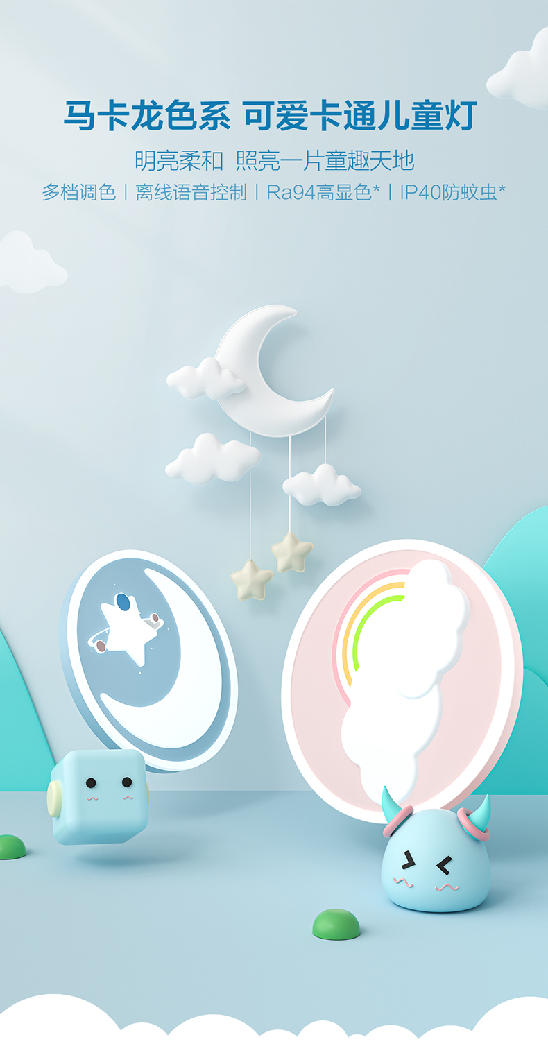 欧普(OPPLE)LED吸顶灯具卧室灯儿童房书房RA94卡通护眼灯饰星月童话
