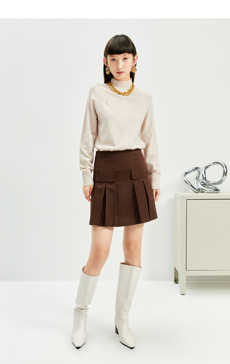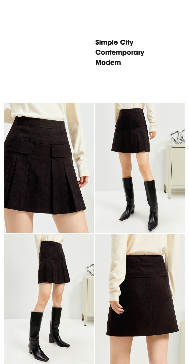NEELLY纳俪商场同款百褶裙女冬新款时尚高腰A字裙半身短裙百搭N21112E01176