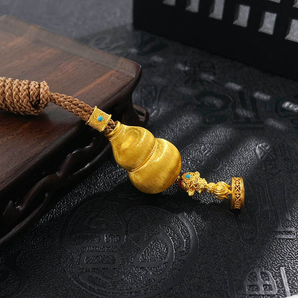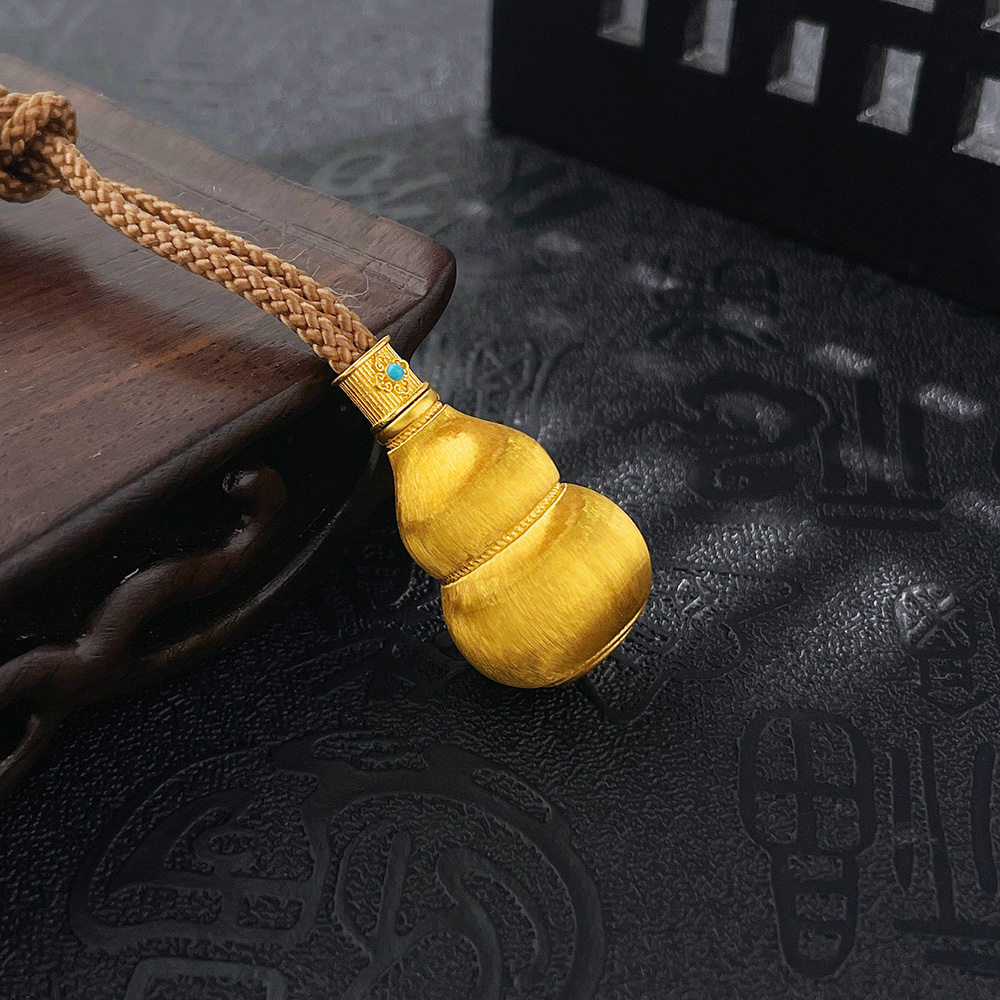 【限时克减150元】足金999 #宝石珐琅 #葫芦 #招财纳福 古法空心挂绳国潮年年有余锦鲤莲花抽拉冰丝金丝绒金葫芦吊坠(含配件 )(AUQGFDZ00141)