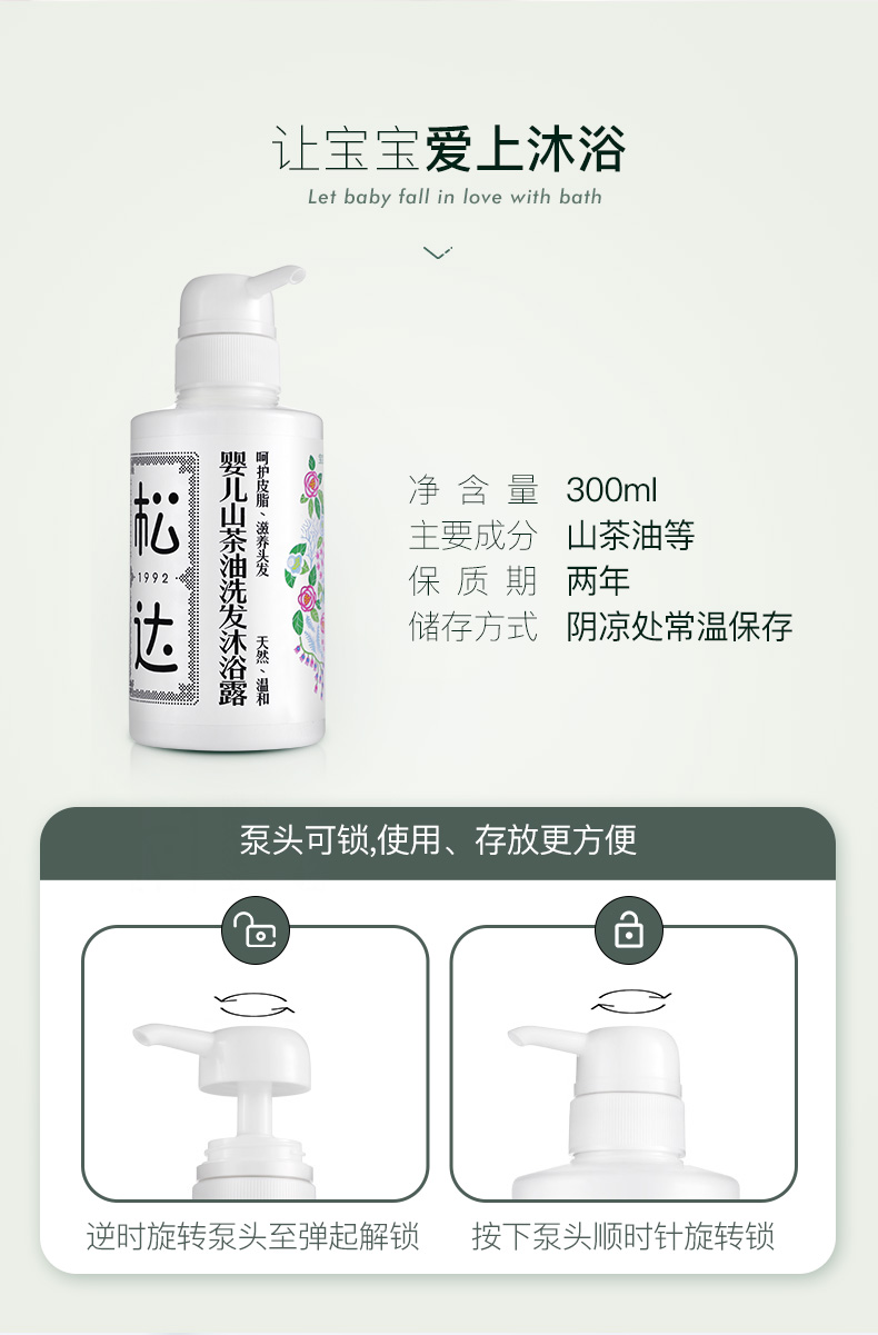 松达婴儿护肤山茶油沐浴露二合一 低泡无硅油300ml