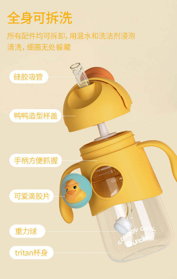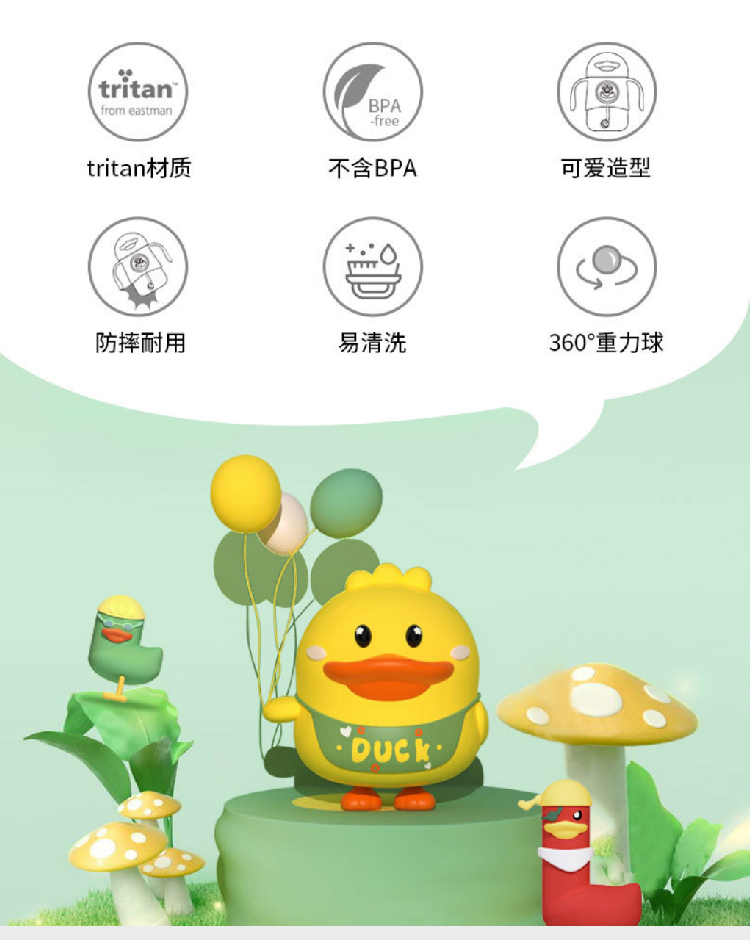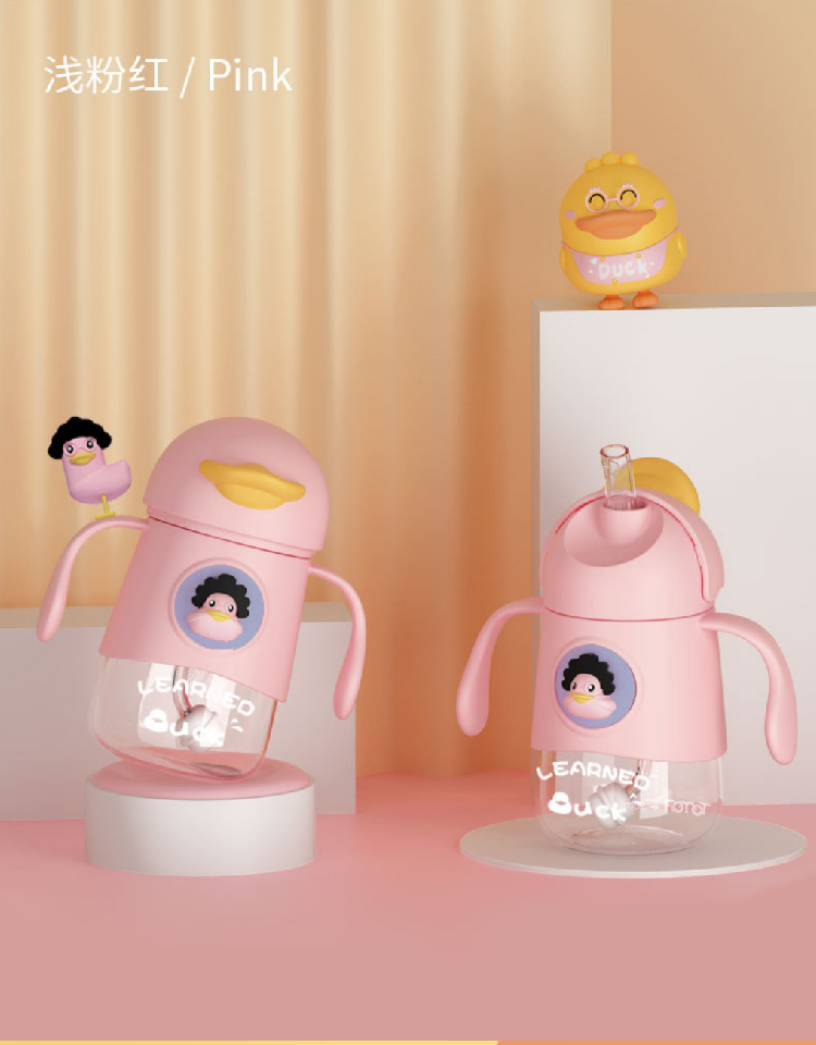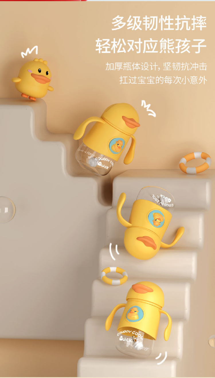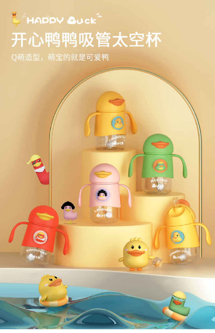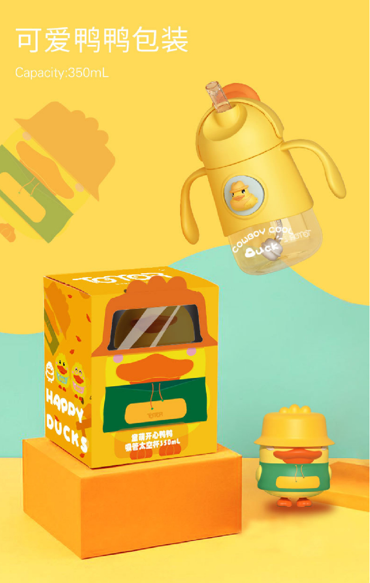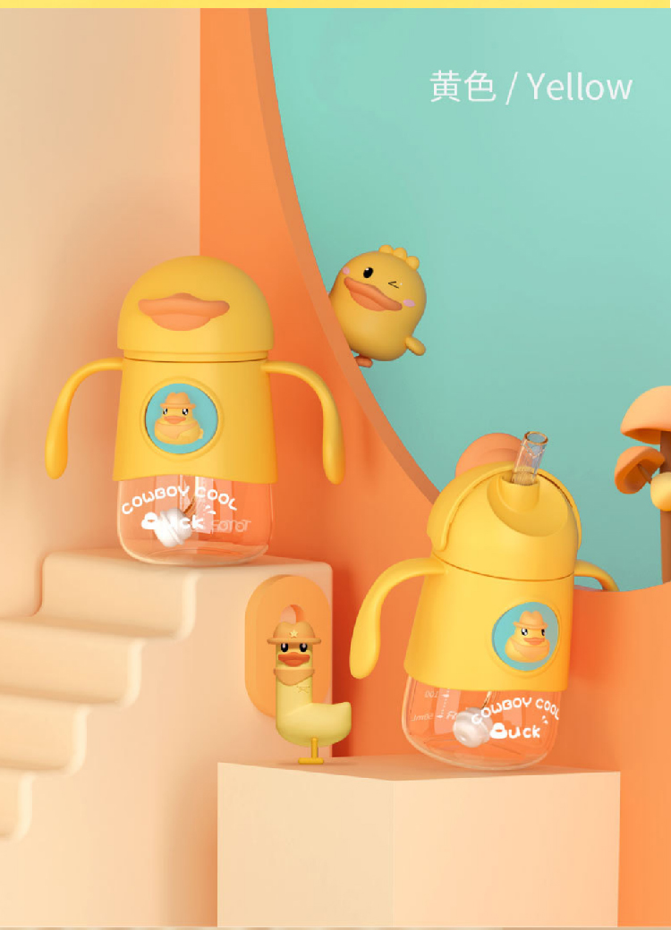 【小黄鸭太空杯】卡通婴儿宝宝吸管水杯防呛漏 带手柄tritan儿童水杯学饮杯