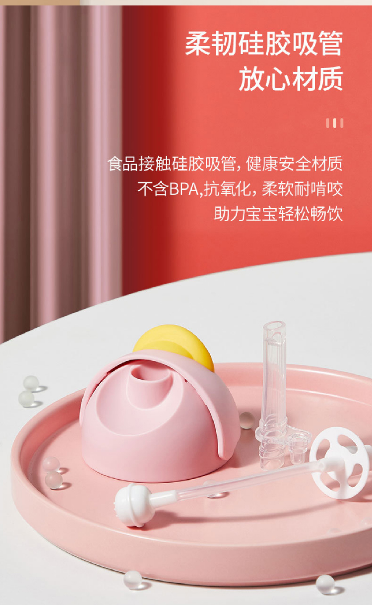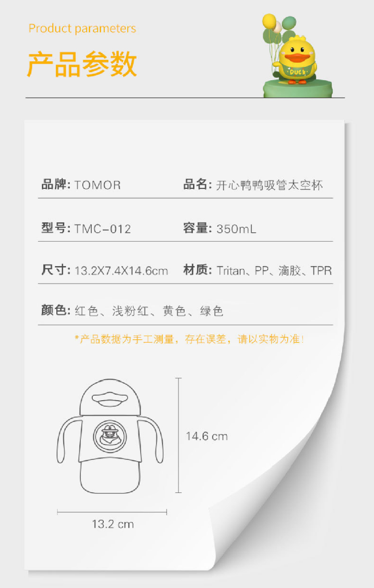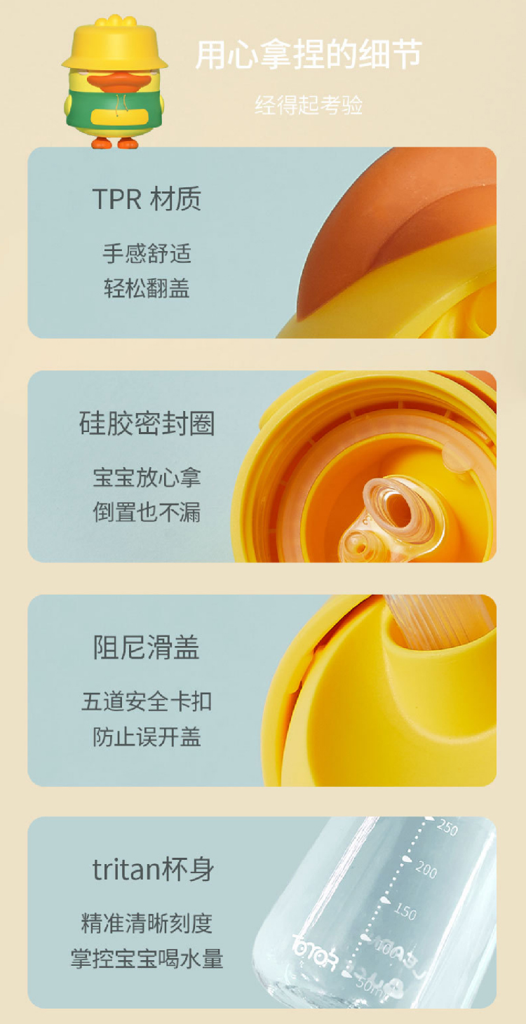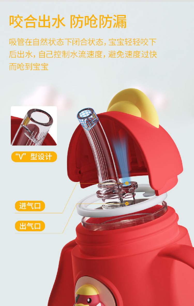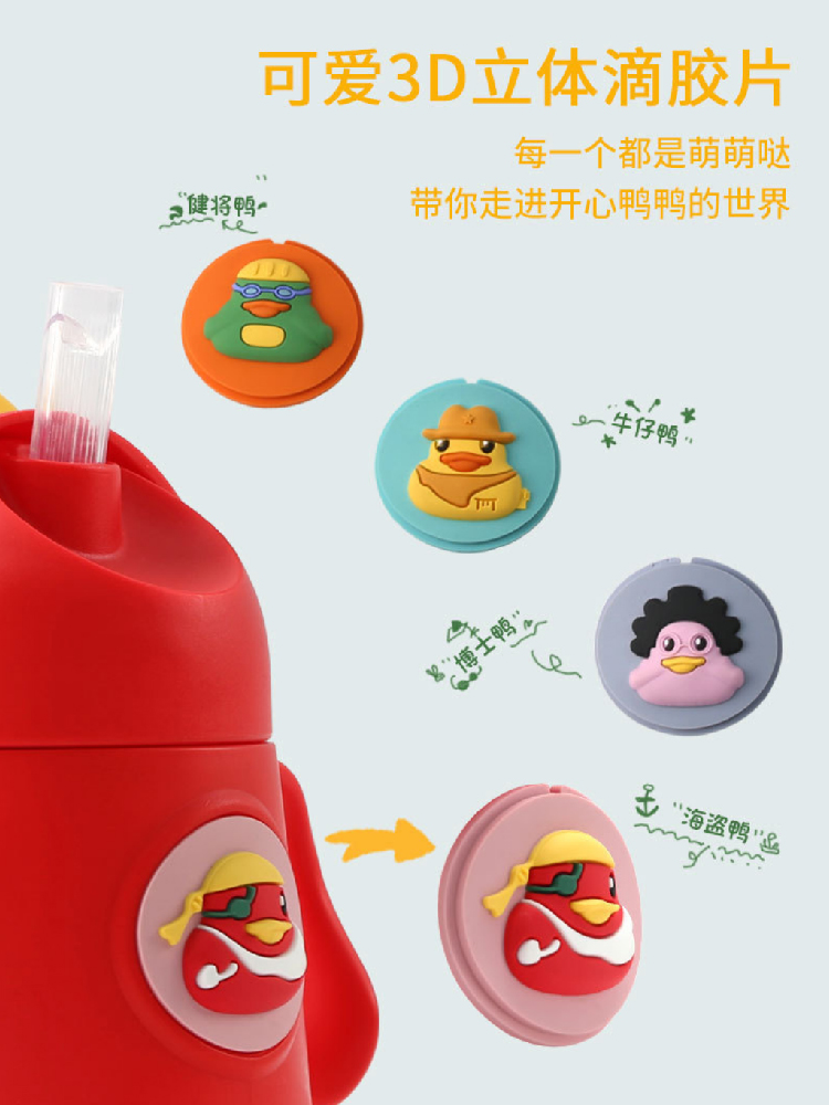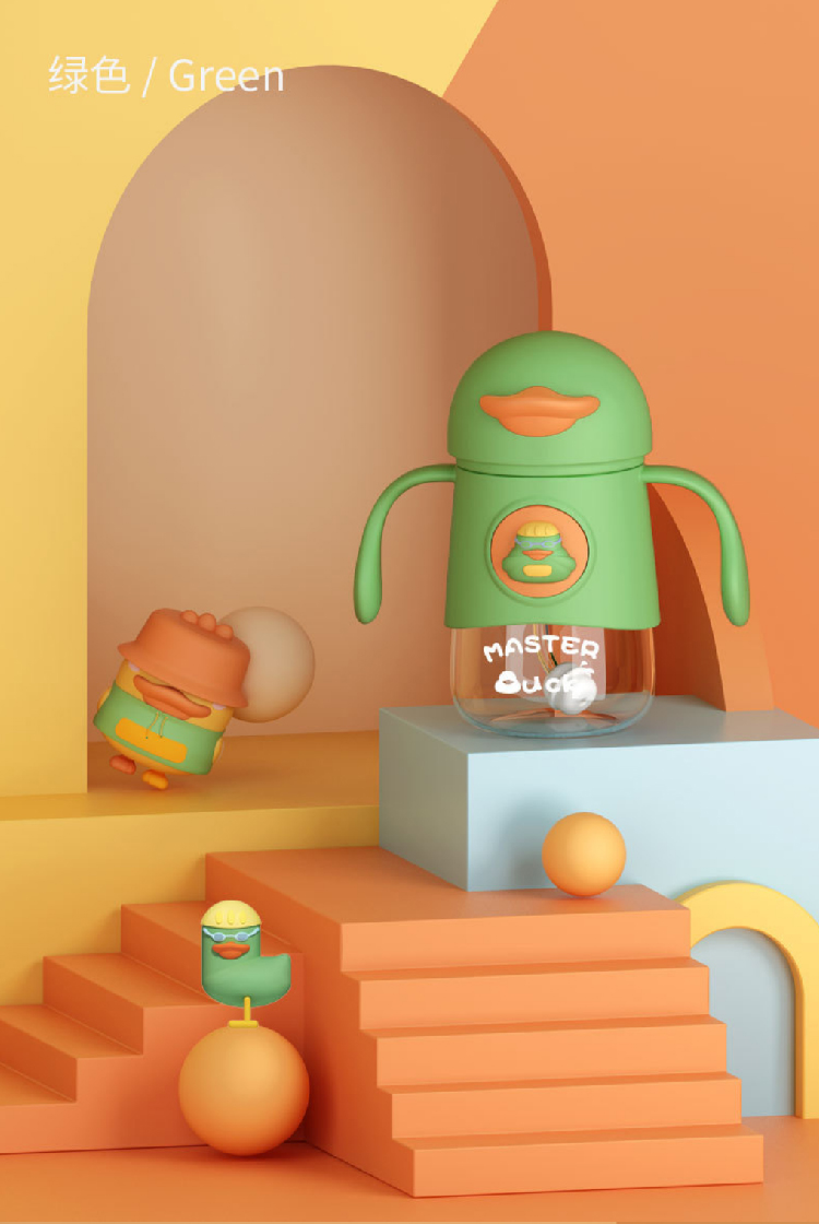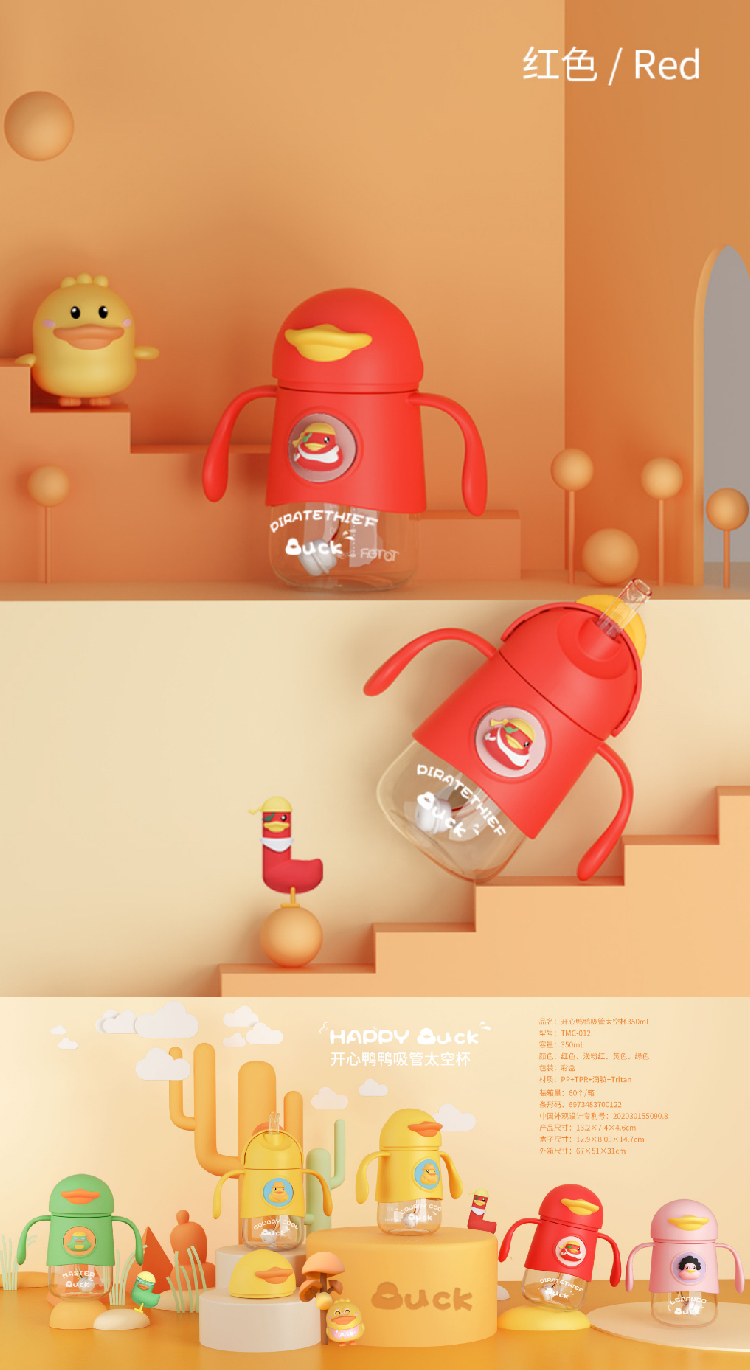 【小黄鸭太空杯】卡通婴儿宝宝吸管水杯防呛漏 带手柄tritan儿童水杯学饮杯