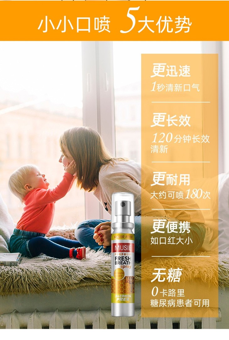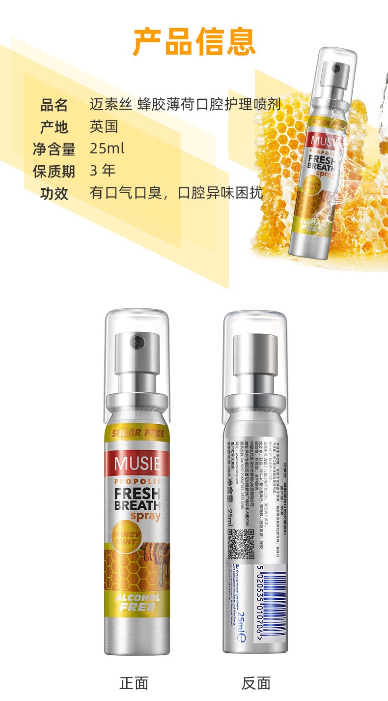 (英国进口迈索丝)蜂胶薄荷味喷气清新剂