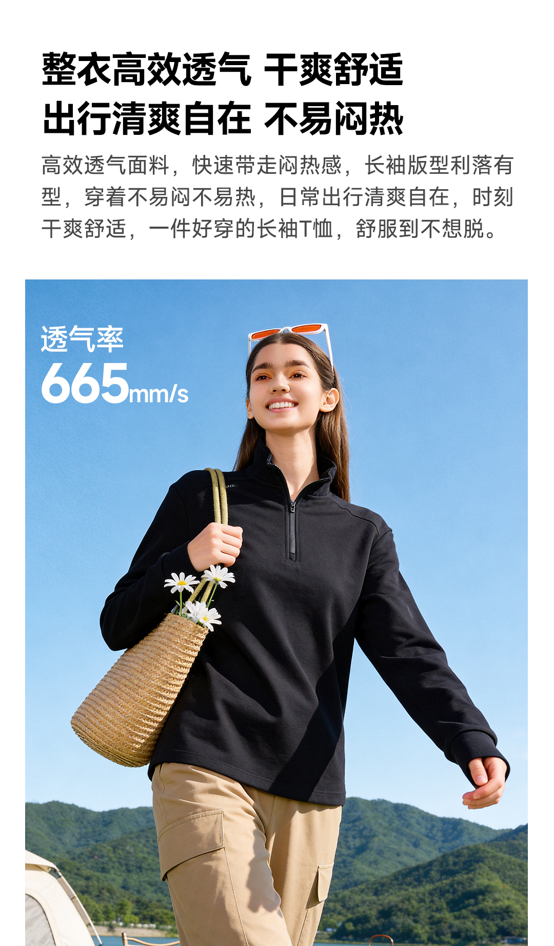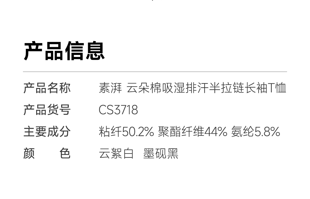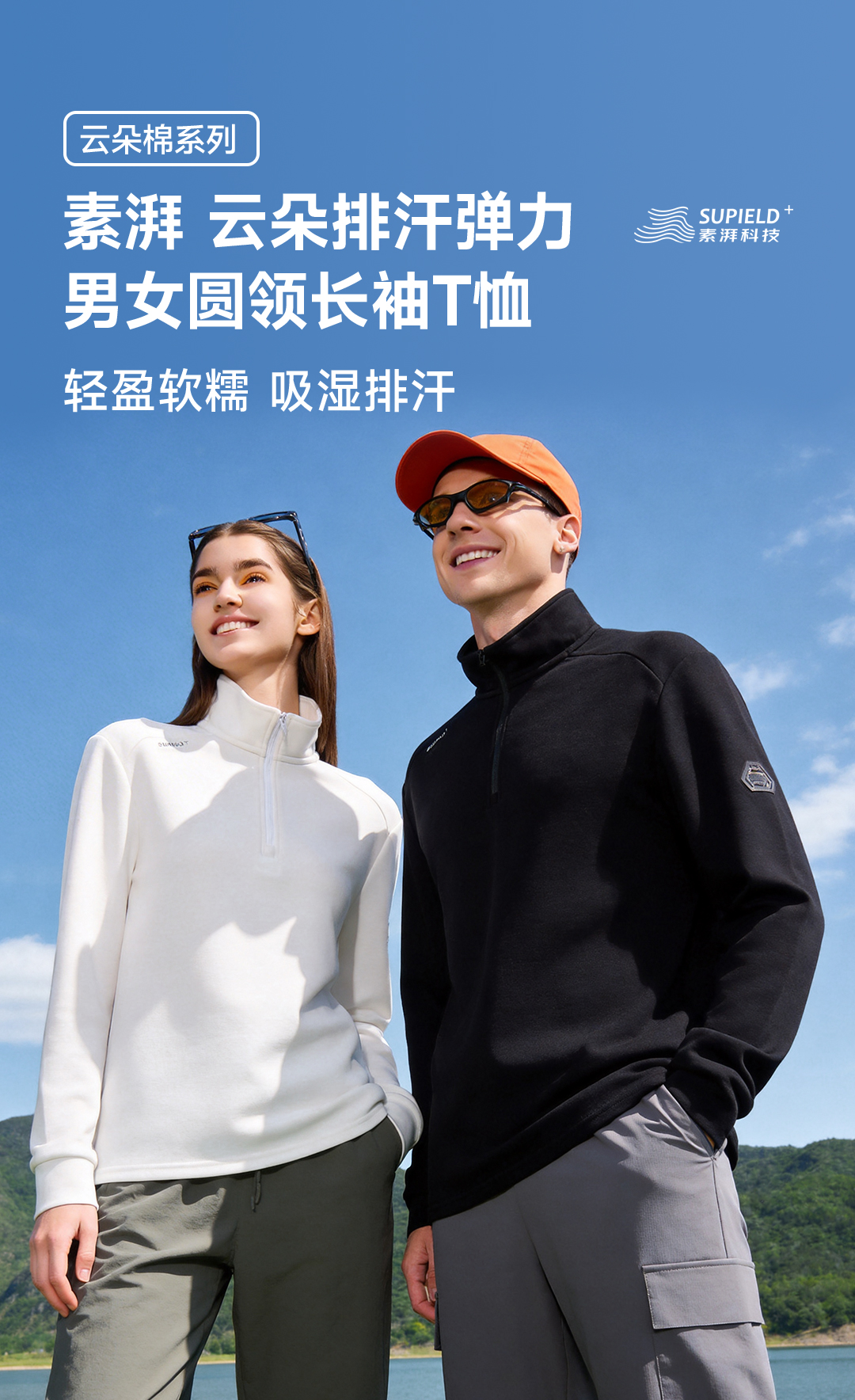 素湃Supield云朵排汗T恤半拉链户外运动高弹力吸湿排汗长袖打底衫