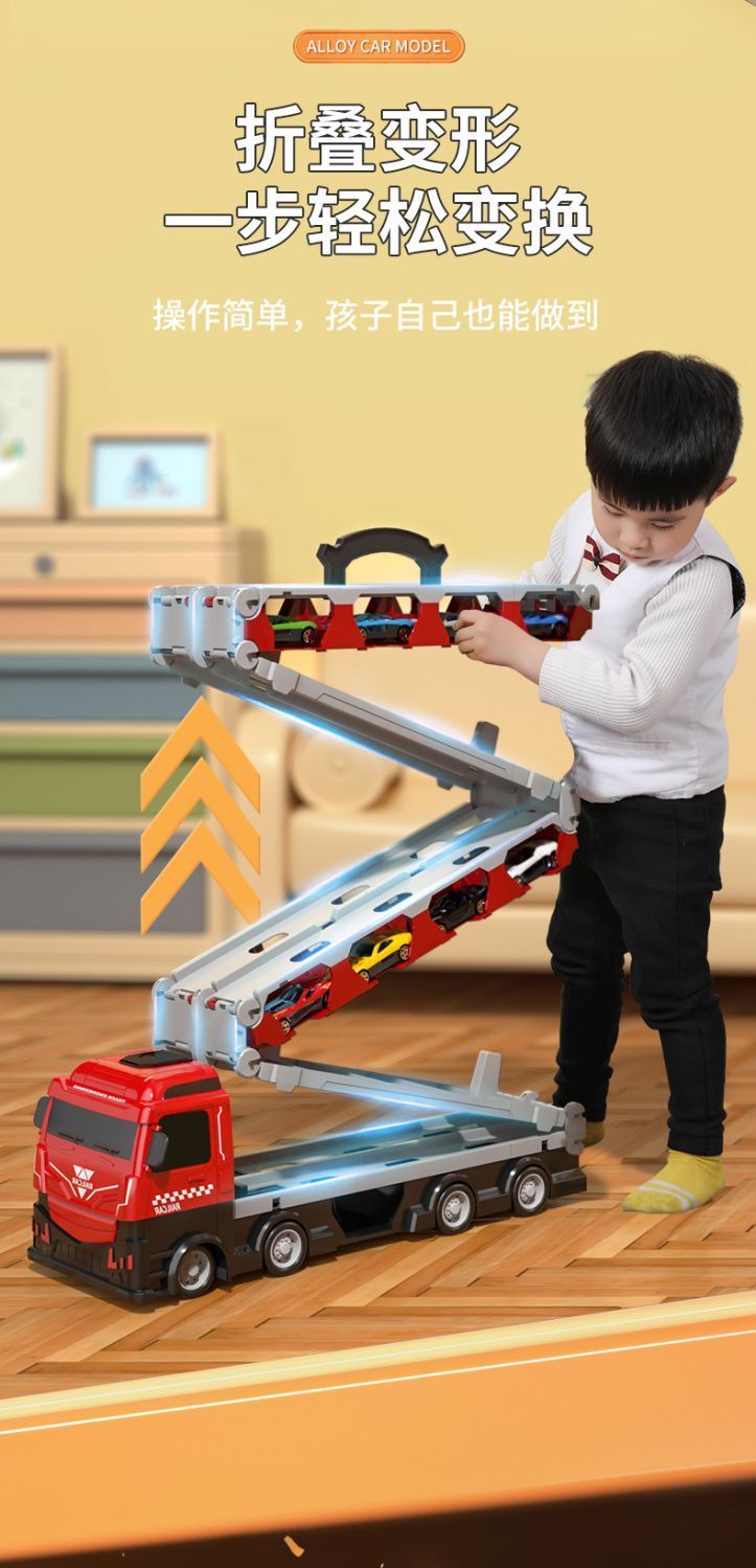 工程车变形大卡车儿童运输折叠轨道弹射汽车男孩玩具