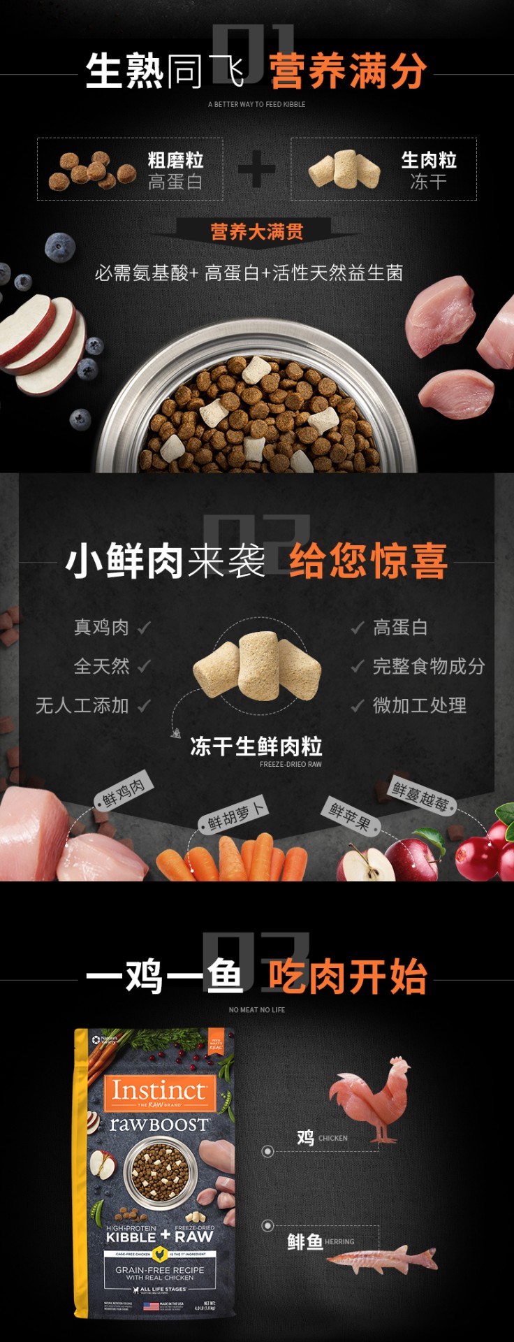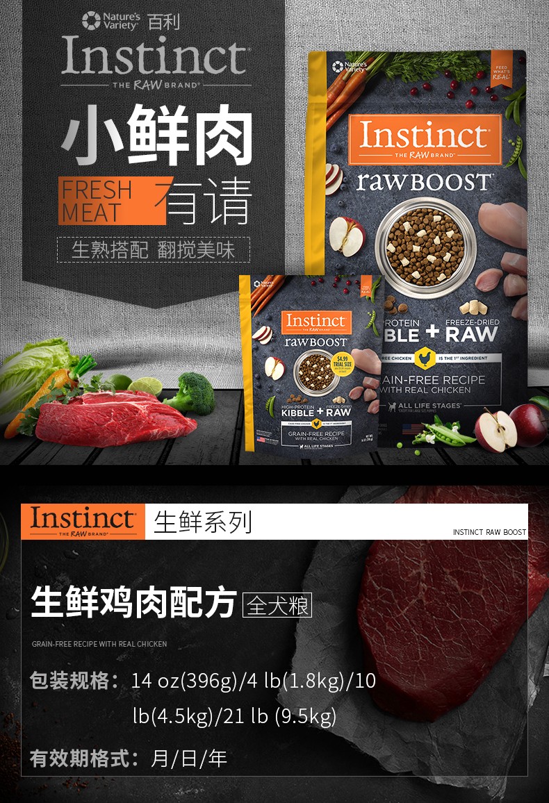 Instinct生鲜本能百利狗粮生鲜冻干鸡肉全犬粮21磅