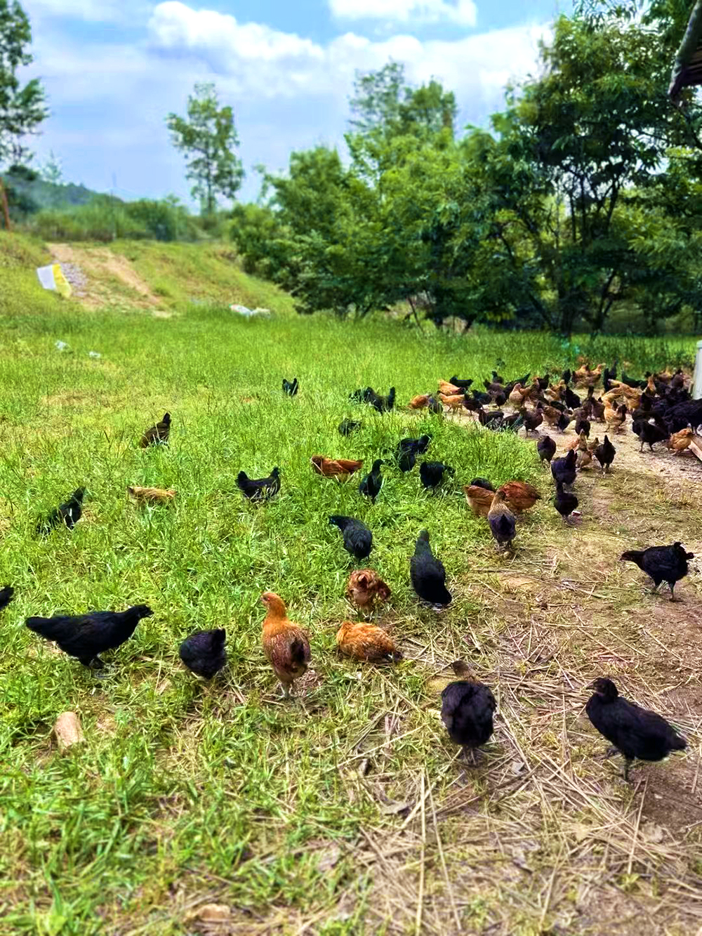 每只土鸡都过着令人艳羡的 “山野生活”—— 饮山间清泉,啄林中虫蚁,主食是农户自种的🌽黄玉米、🥬菜叶、豆粕,🐓辅食则是随处可见的青草与树叶。