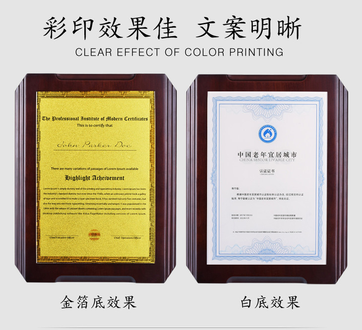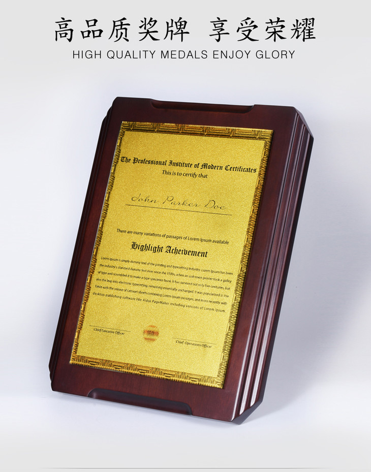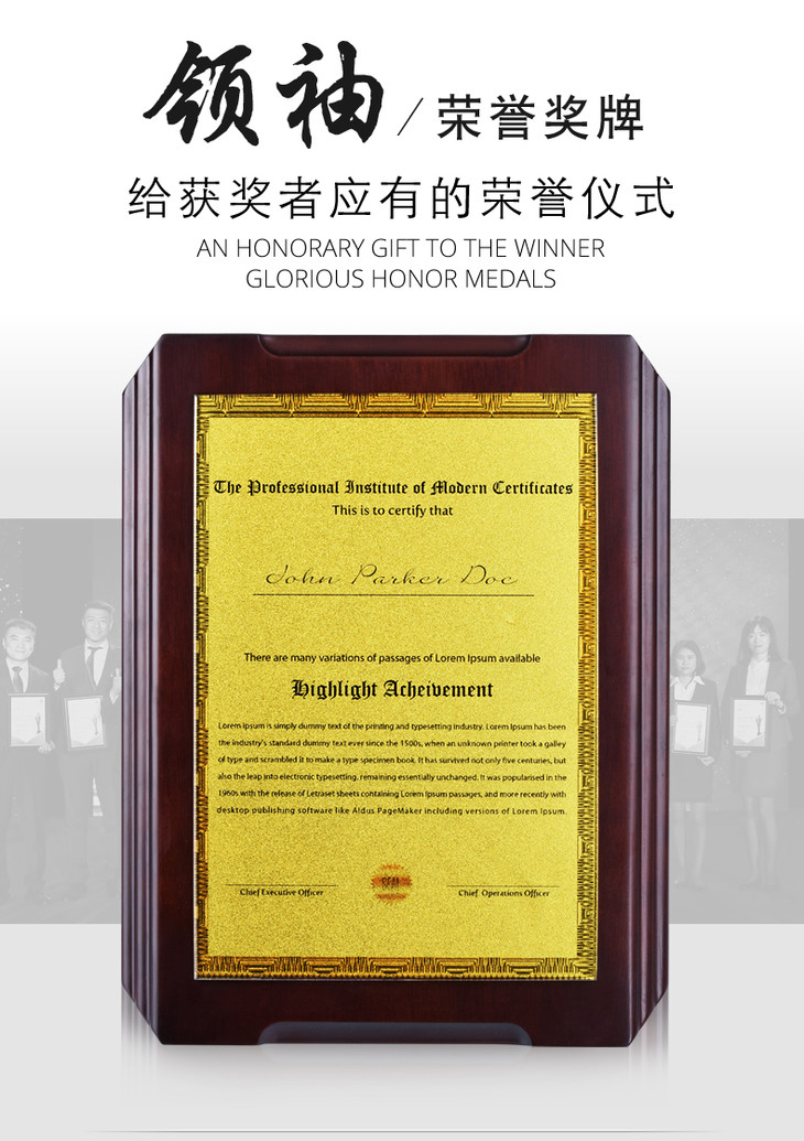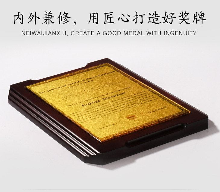 荣誉牌匾定制 纹绣师资格证书制作 定做金箔奖牌授权牌加盟牌刻字