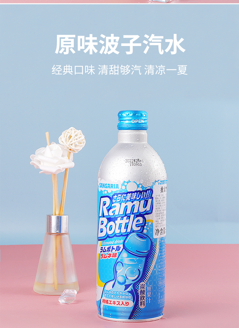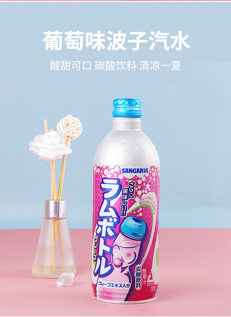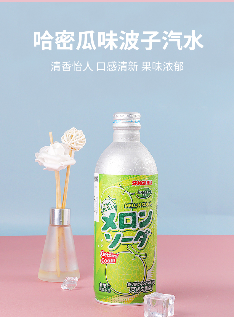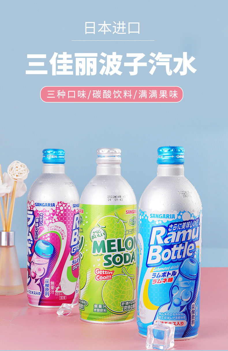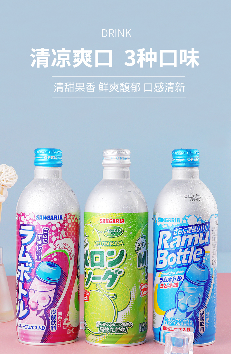 三佳利哈密瓜味/原味/葡萄味波子汽水500g 充足气量炫酷的铝瓶装冰镇一下口感更佳 020195/022730/020023-10
