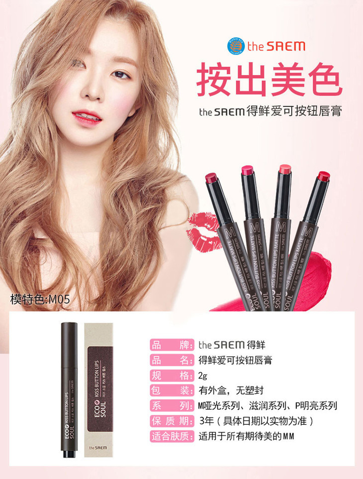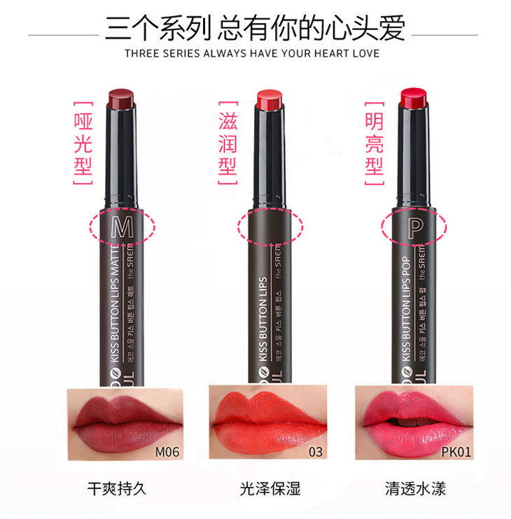 【现货】韩国the saem得鲜口红按压保湿 不脱色 哑光雾面