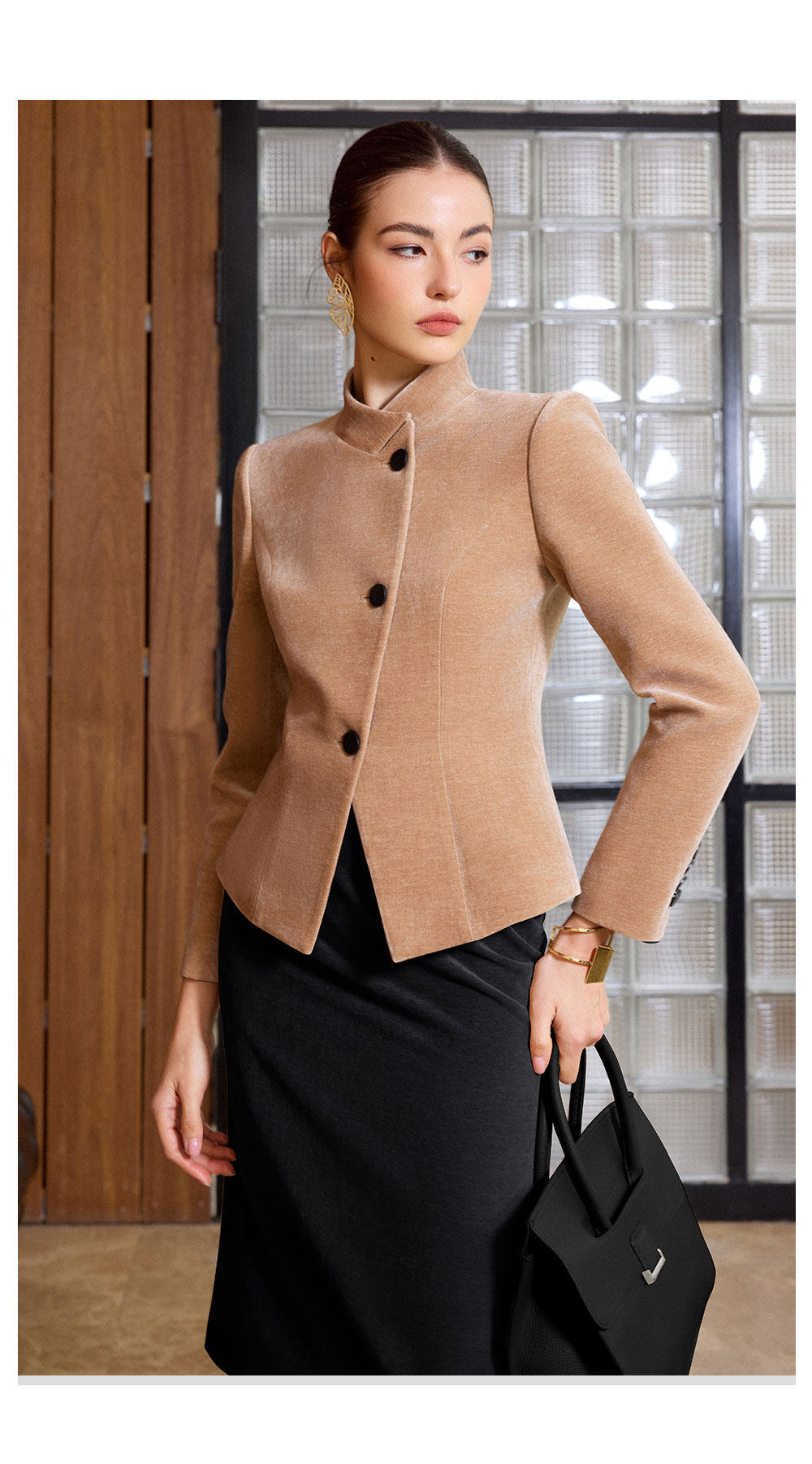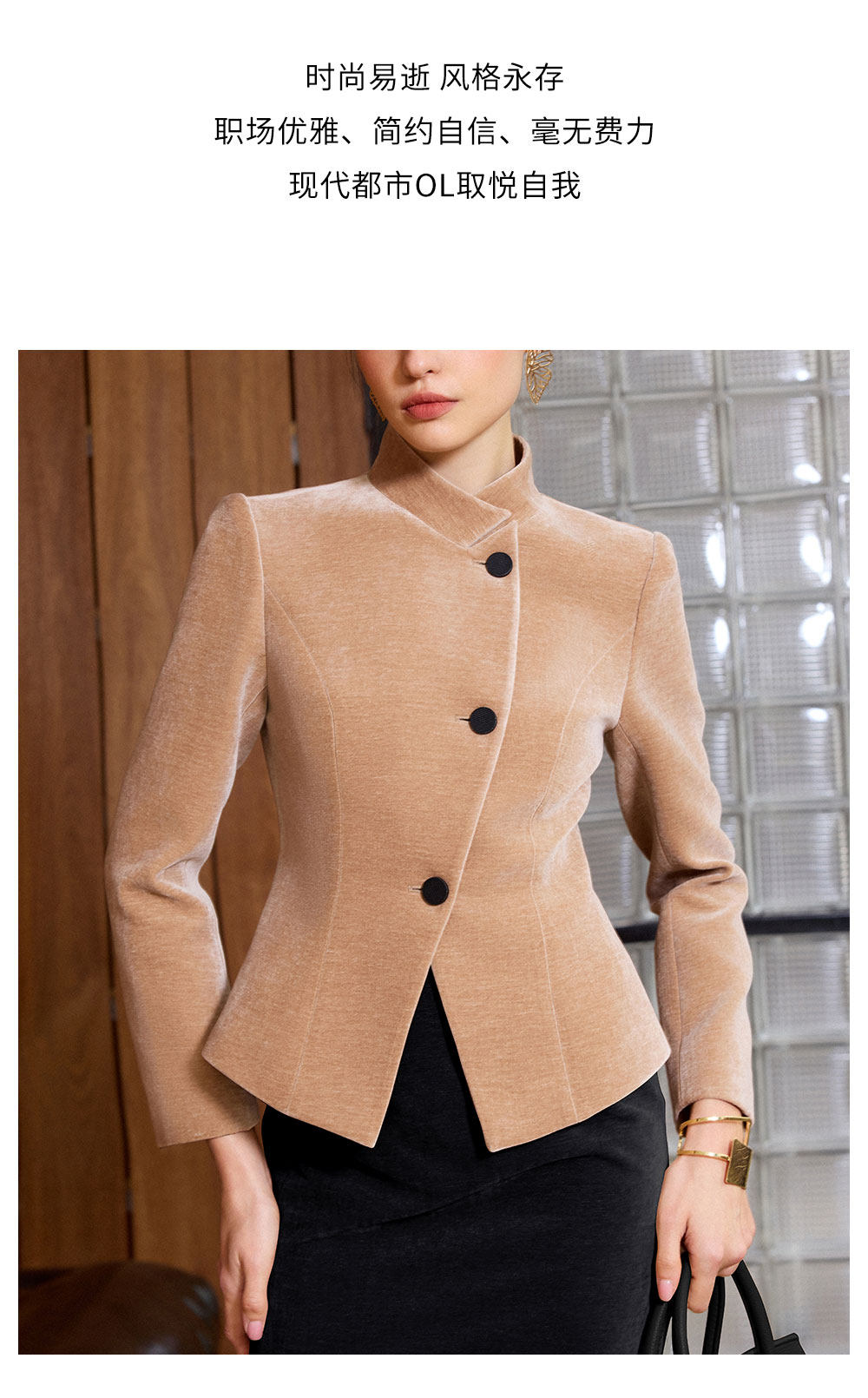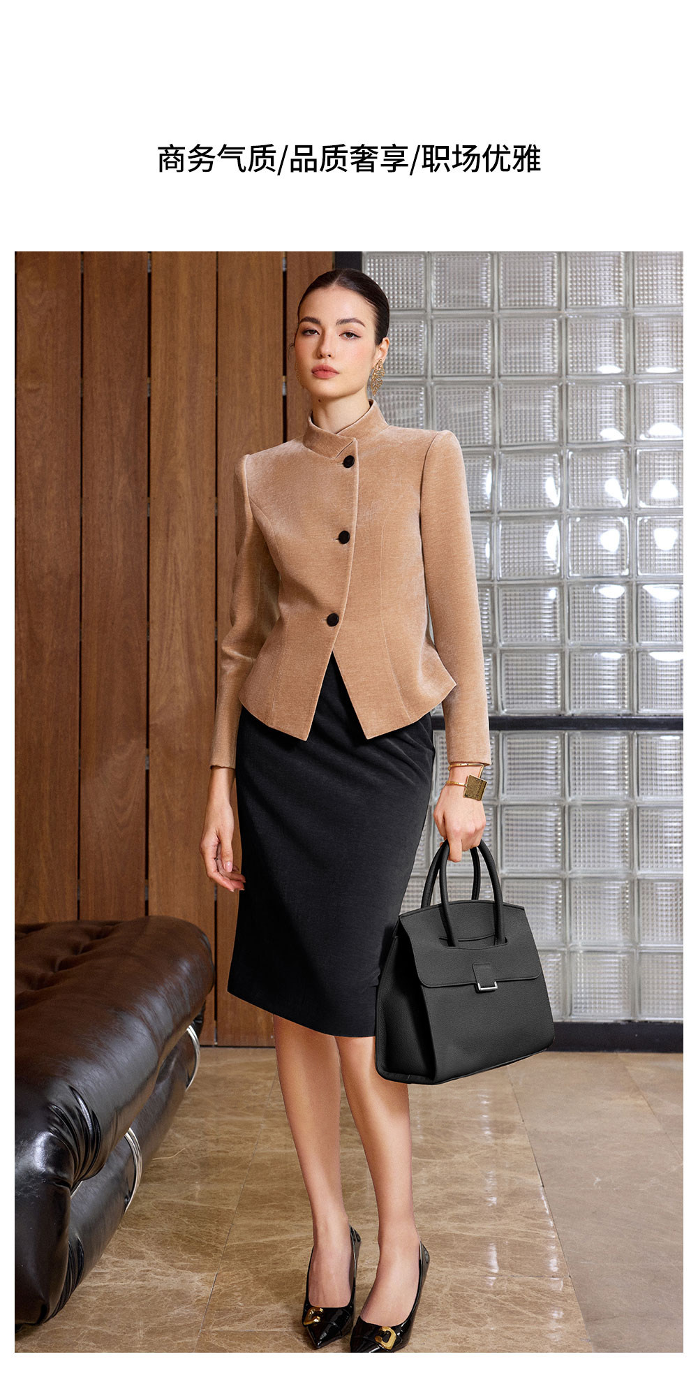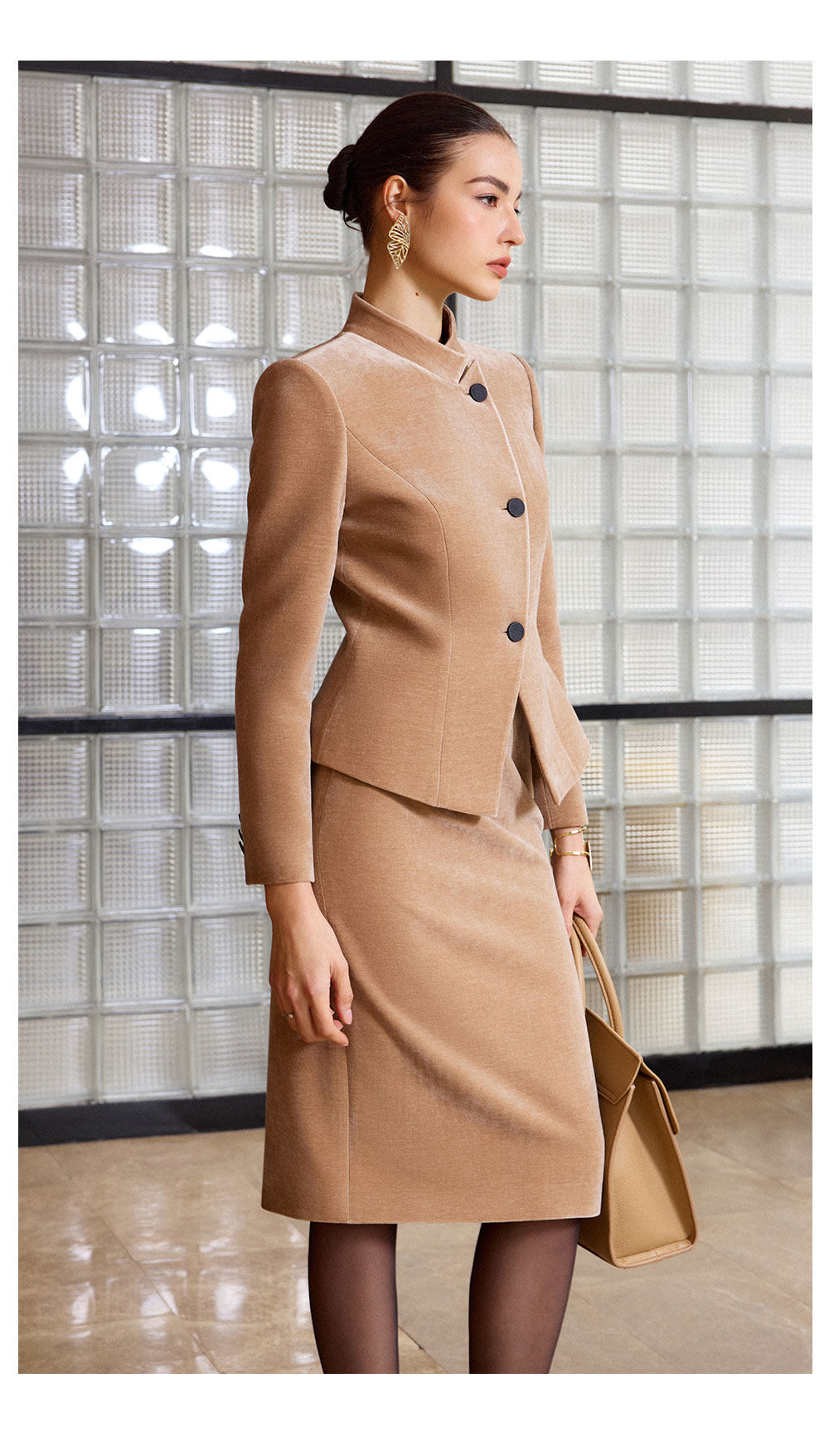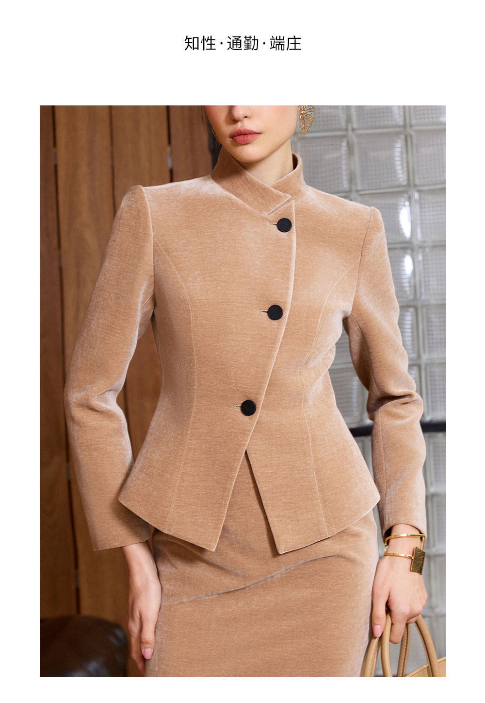 IWY/气质职业套裙女秋冬修身立领两件套裙高级感雪尼尔丝绒正装通勤装C2580+S2515