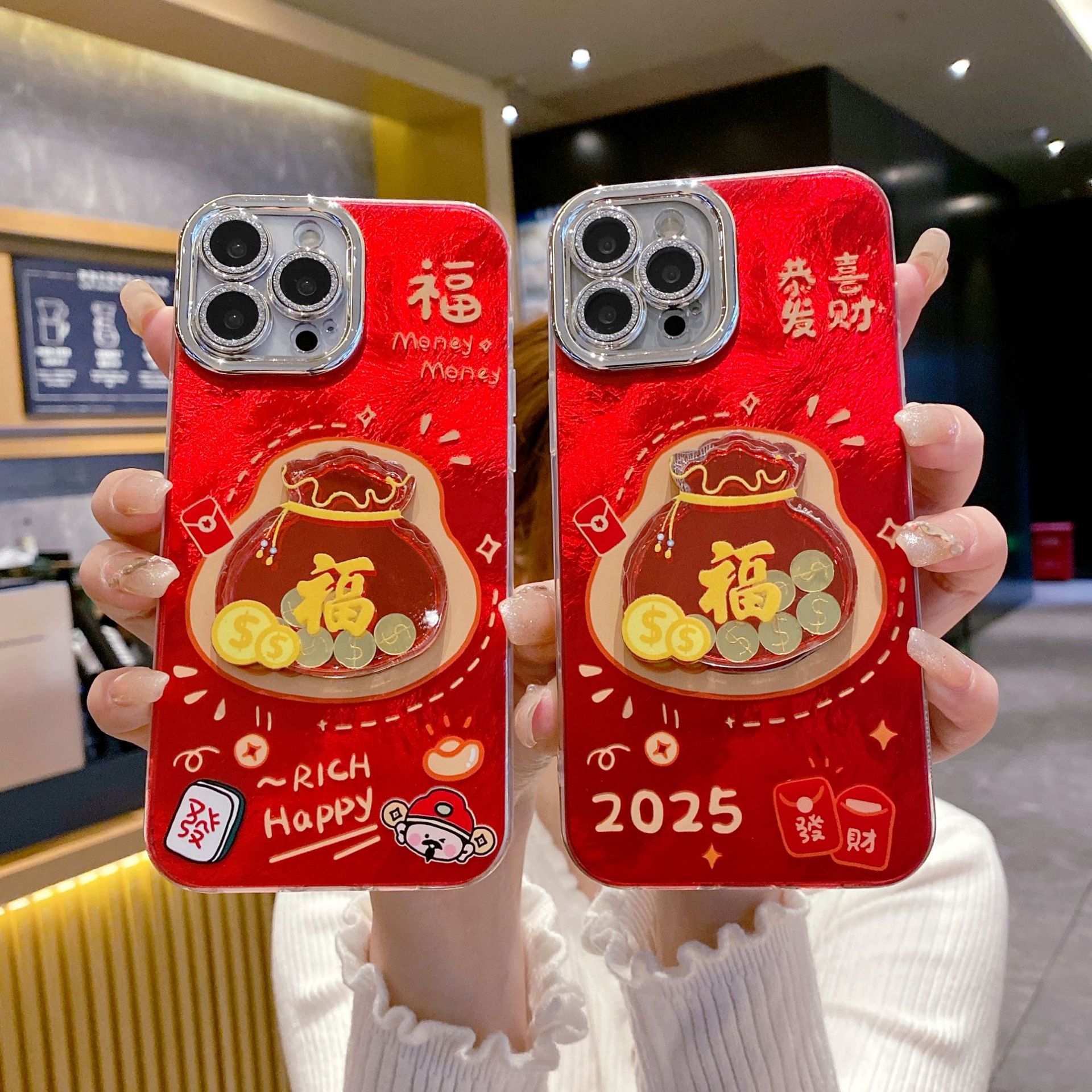 【新年限定!福袋苹果手机壳】适用iphone16PRO漩涡精孔福袋手机壳苹果11/15喜庆保护套13。ry