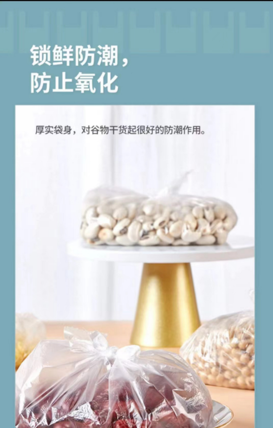 加厚双面2.8丝!承重好不易破损,用完还可以当垃圾袋 ✅食品级PE材质,可进冰箱和微波炉 ✅加厚双面2.8丝!承重好不易破损 ✅背心式保鲜膜,打结、手提方便 ✅安全健康无毒、锁鲜防潮防串味 ✅出门时,随手装点早餐零食水果都可以。 大号:130只,小号:210只