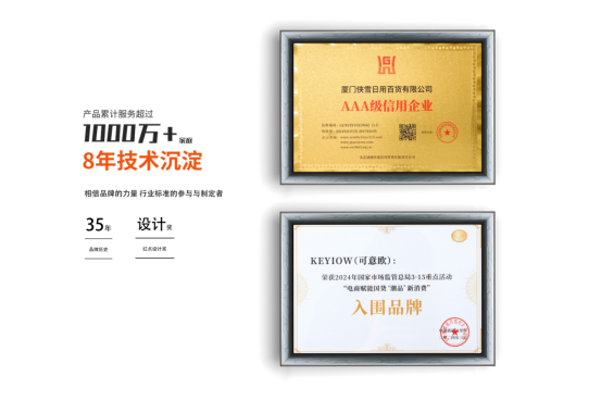 KEYIOW品牌故事 KEYIOW,一个源自宝岛台湾的品牌,自诞生之初就承载着台湾设计师的匠心与情怀。 这个拥有35年历史的品牌,不仅见证了台湾设计的成长与变迁,更在全球市场上展现了其独特的魅力。 凭借卓越的品质和独特的设计,KEYIOW在大陆市场上屡获殊荣。 荣获国家市场监管总局3·15重点活动“电商赋能国货‘潮品’新消费”入围品牌,更是对品牌实力的最好证明。这一荣誉不仅代表了业界对KEYIOW的认可,也彰显了品牌在设计领域的领先地位。