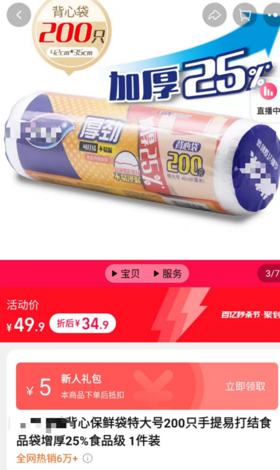 某宝某洁一卷200只,折后还要34.9,咱们任选两卷最大420只仅团29.9.
