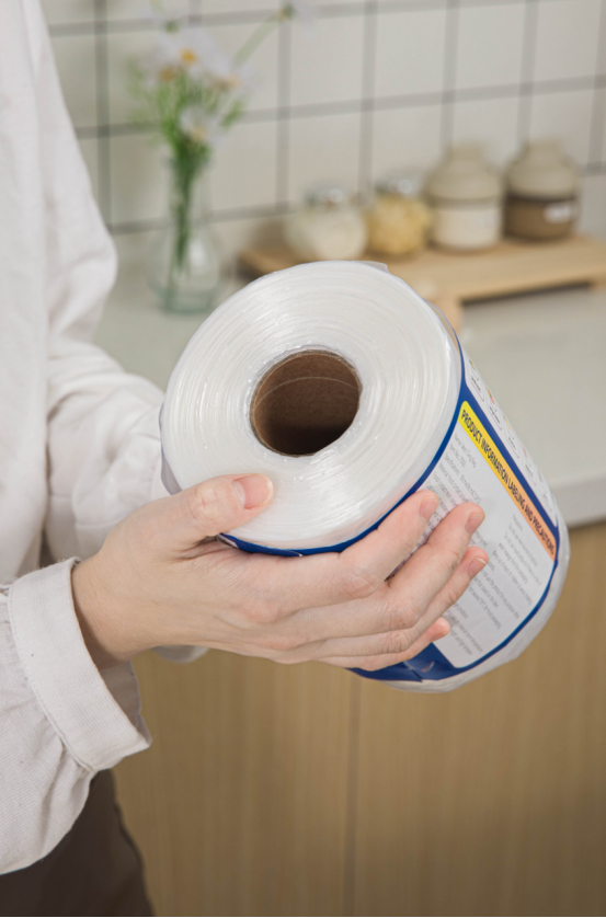 这么大的一卷 可以使用很长时间不必频繁购买 它的厚度也让人满意不用担心轻易破损 这种大分量的设计,不仅经济实惠 还能满足家庭日常的大量储存需求