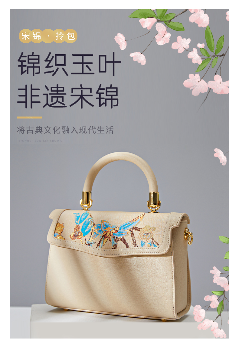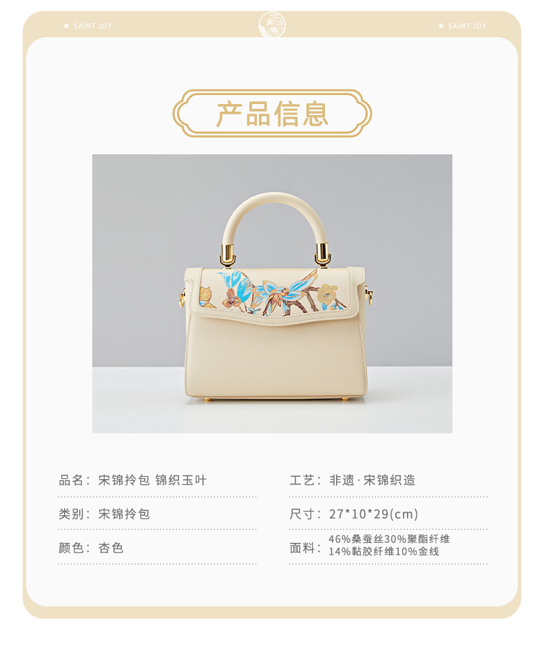 SAINTJOY/上久楷 宋锦女式拎包 锦枝玉叶 BWS23A0702