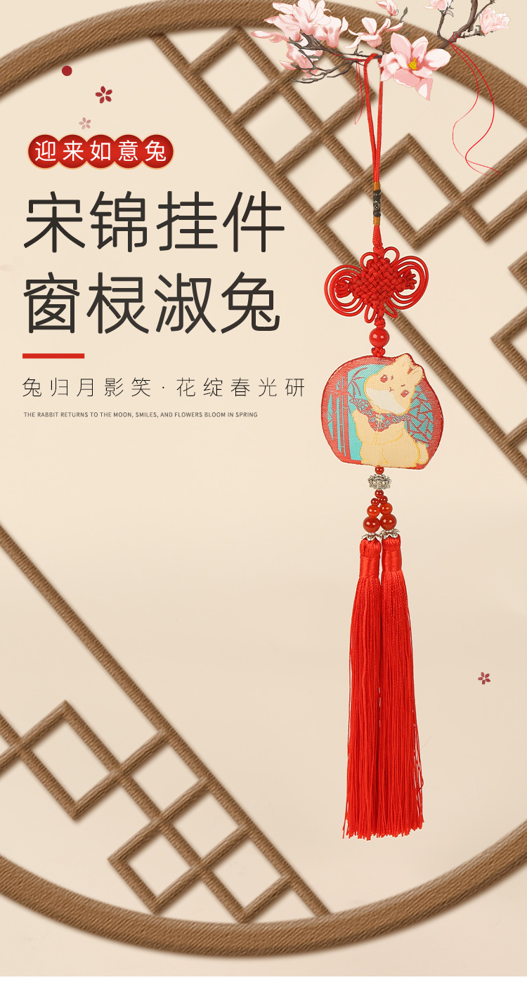 SAINTJOY/上久楷 宋锦挂件 窗棂淑兔 SPS22A06
