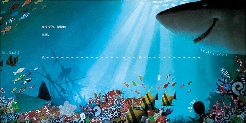 原来,空间也是可以被倾听的。近处的屋顶,远处的山林,浅浅的沙滩,深深的海底,它们是生命共存的场域。每一个空间,都对应着感受的世界和现实的世界。真实的生命,真实的相遇,不断生发出来。空间有时宏阔有时幽微,在小小的图画书里,声音是不同空间并存和交互的媒介,听见了,听见了!