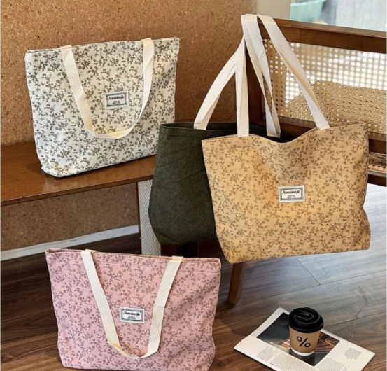 巨大的巨能装 巨温柔 这款的质感真的绝了老婆们! 容量很大可以放平板 化妆品水杯等等 帆布材质不仅结实耐用 ‼ 还增添了一份随性与自然的感觉 “ 试问谁还没有这款碎花包啊”