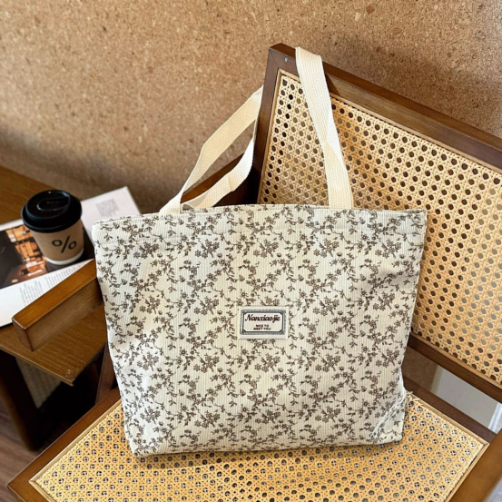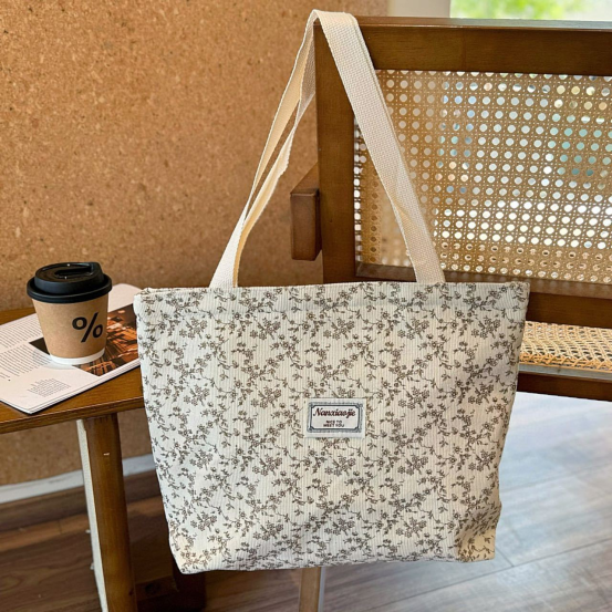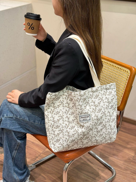 米白色 ins风韩系穿搭必备的简约帆布包 整体ins风的小碎花 是韩国东大门新款 拍照蒙一层柔光滤镜清新自然美貌upup 这款精致繁花清新系列真的好有意思‼ 自成一派的花花刚好的大小修饰身形~ 往肩上一背就会很自然的给穿搭增色不少