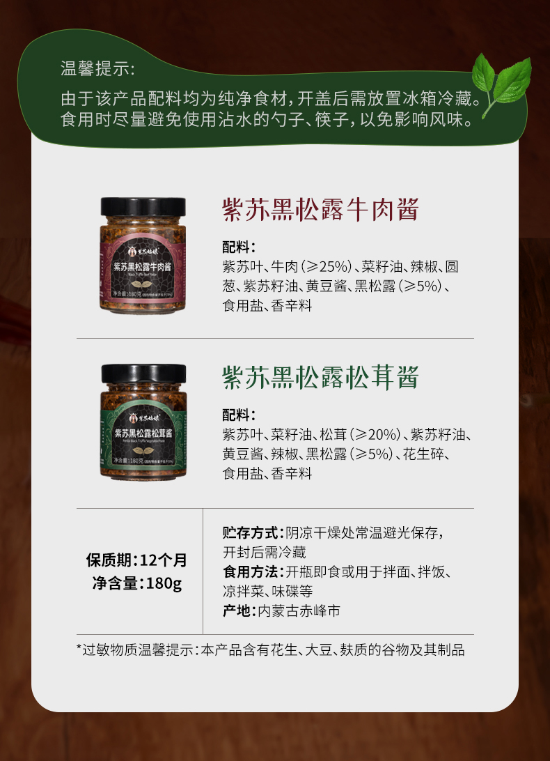 紫苏姑娘·鲜香紫苏黑松露牛肉/松茸酱 添加头道有机🍃紫苏籽油富含α亚麻酸 鲜香料足回味无穷
