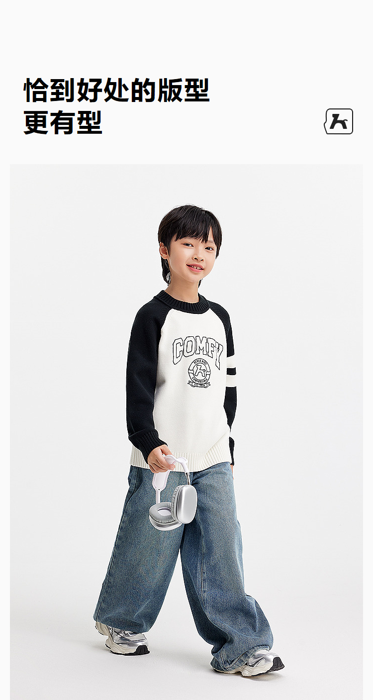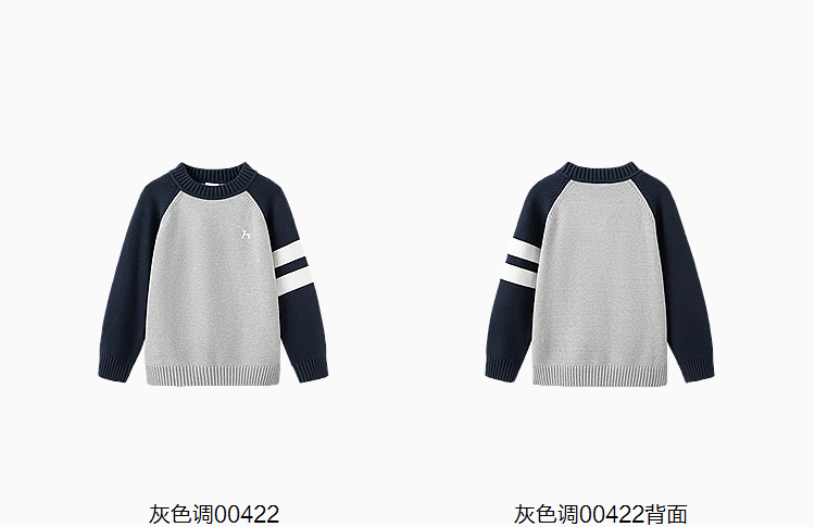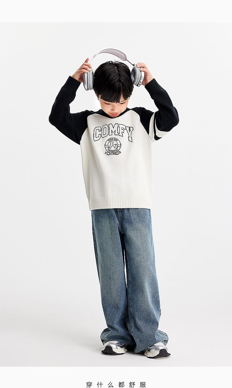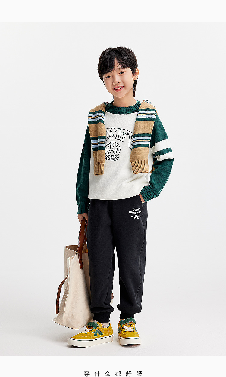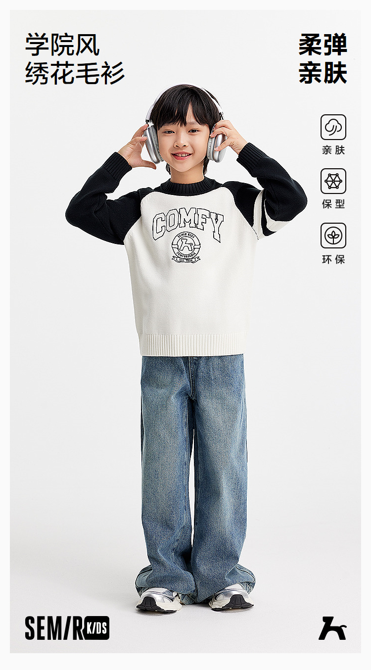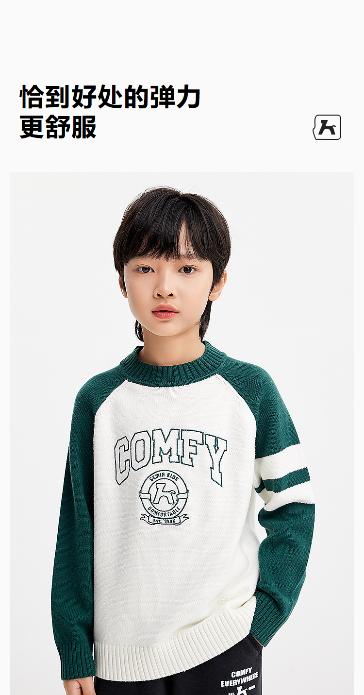 森马儿童毛衫2024新款撞色绣花针织衫学院风套头衫冬男童内搭上衣