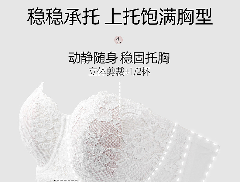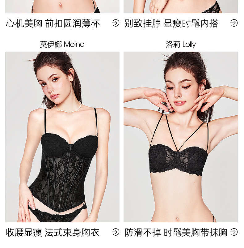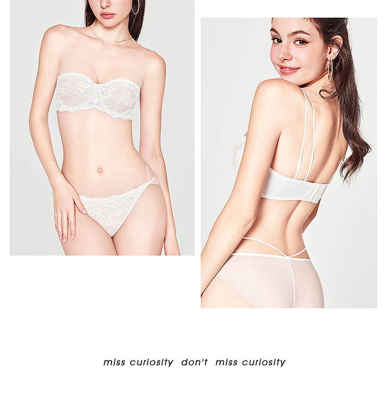 好奇蜜斯防滑无肩带内衣女抹胸蕾丝薄25春文胸罩套装大胸显小纯欲 洛莉