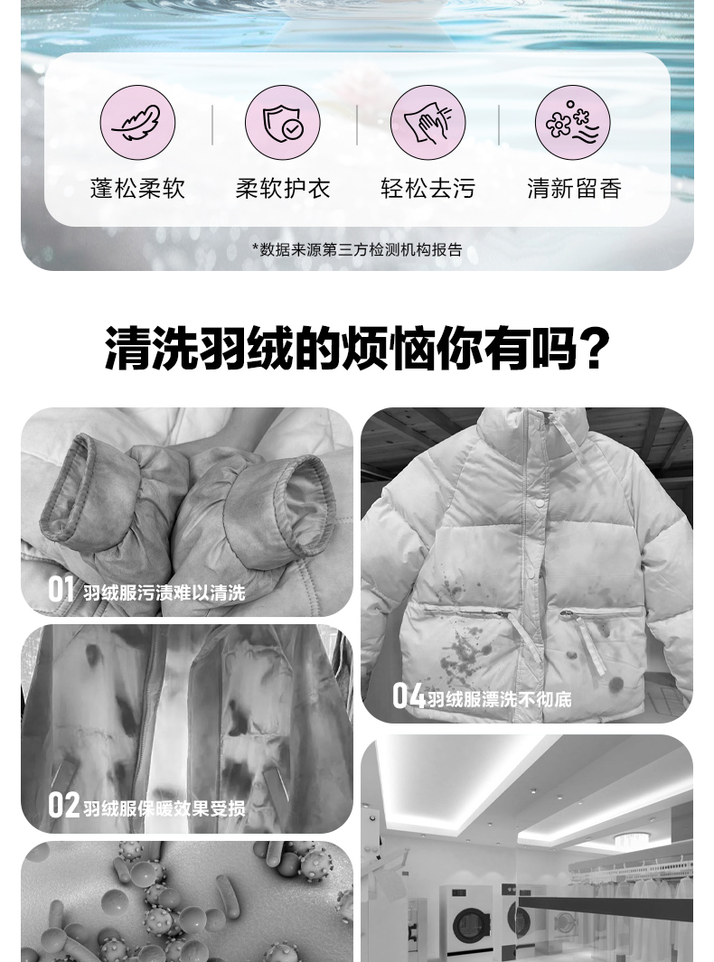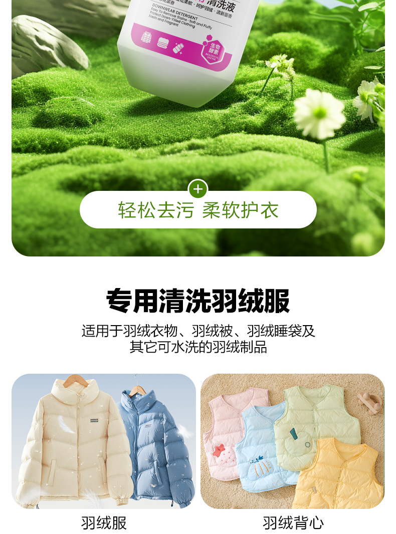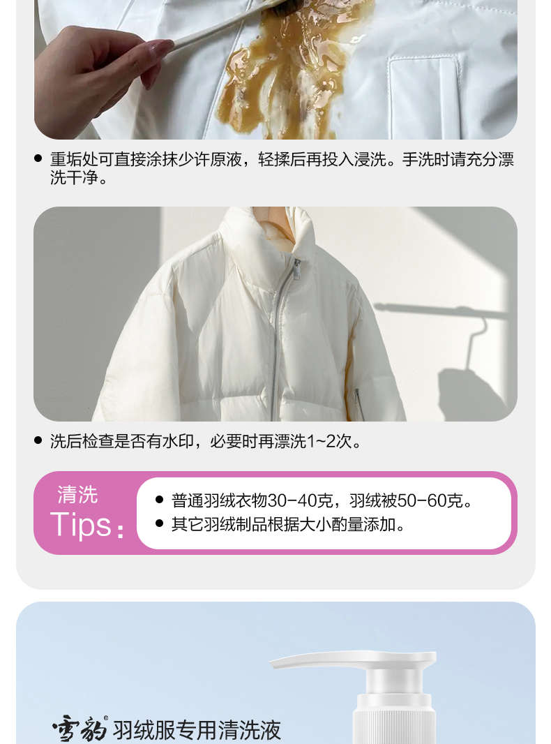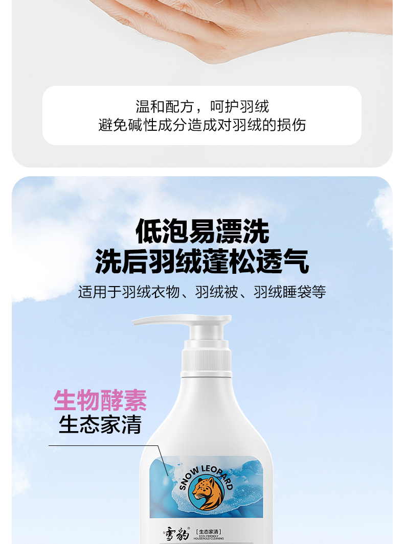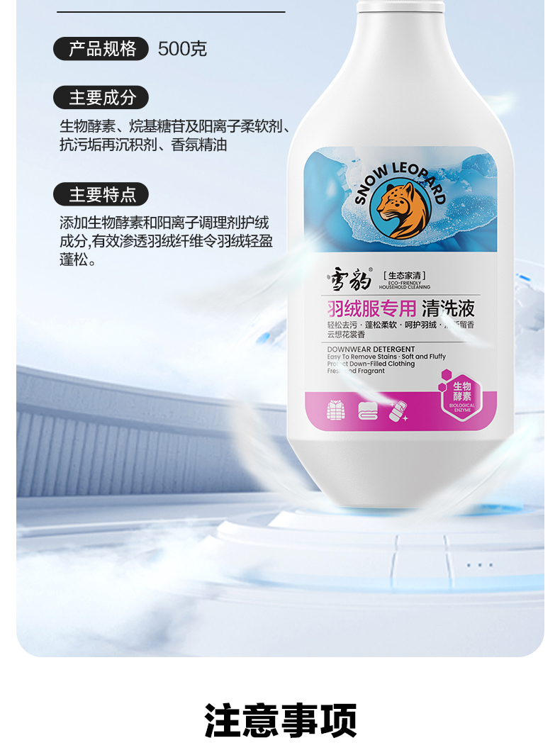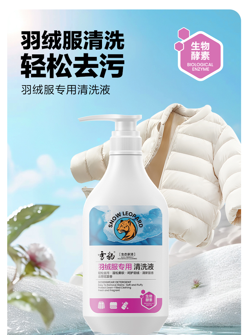雪豹生态家清 羽绒服专用洗涤剂500g 清新花香 轻松去污 不伤衣物 蓬松柔软X3318-D