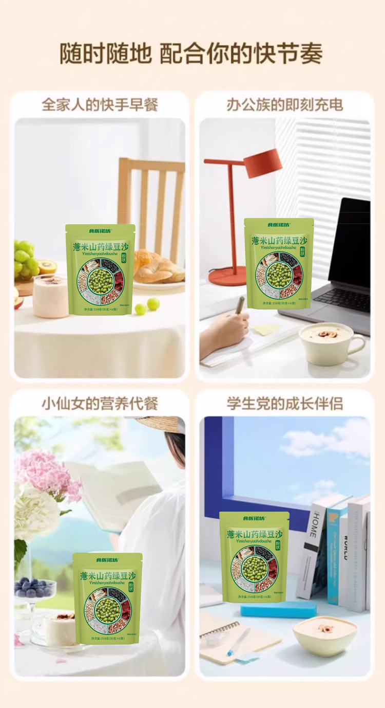 【夏日清凉饮品❗薏米山药绿豆沙】甄选品质原料制作,精选绿豆/山药/薏米/黑豆/红枣/燕麦/茯苓/芡实,粗粮细作贴心搭配,下午茶休闲便携冲泡饮品L