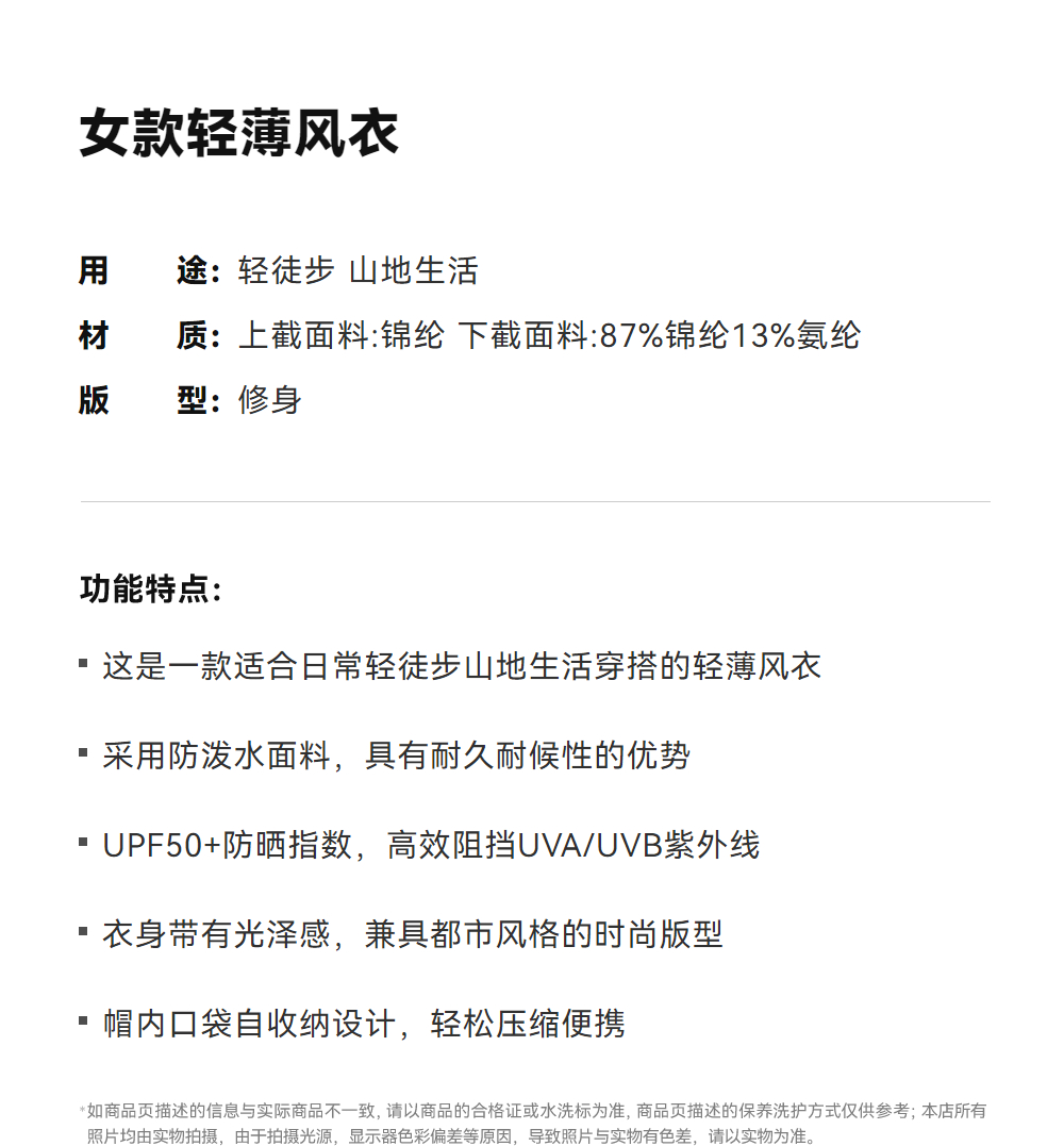 KAILAS凯乐石 户外运动 女款轻薄风衣 KG2426203【Z】