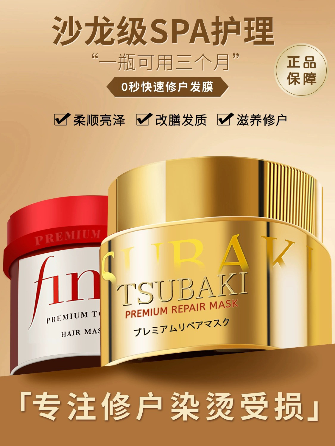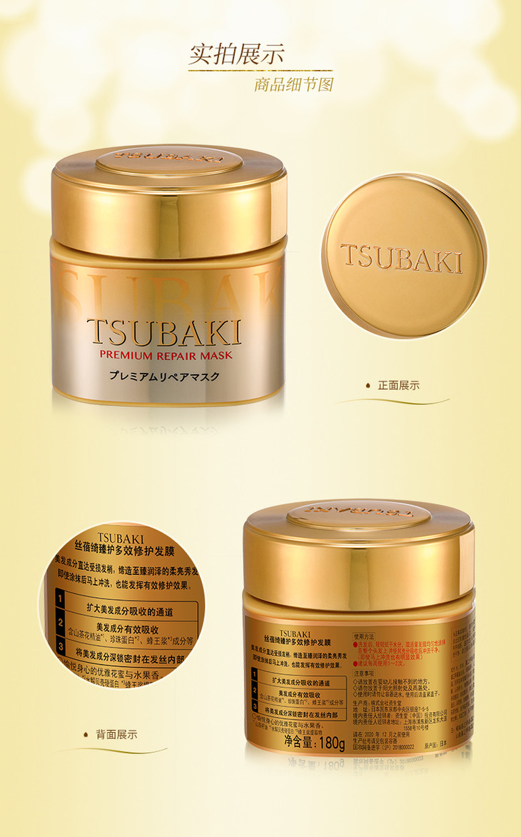 日本 资生堂 TSUBAKI丝蓓绮 金色0秒修复 180g / 红色Fino美容液高效保湿发膜 230g