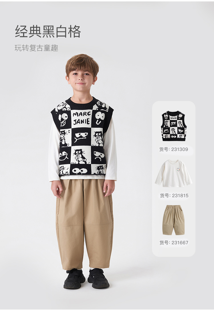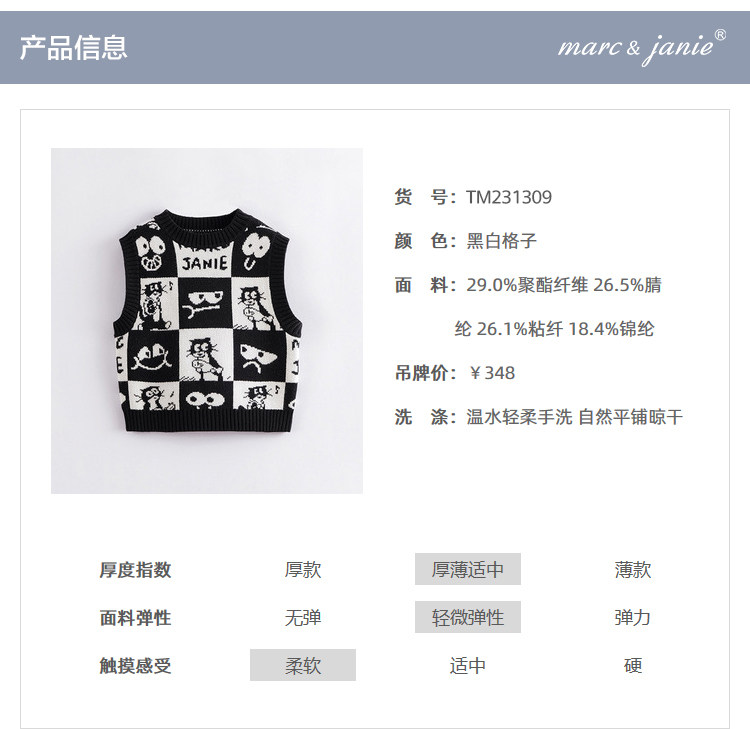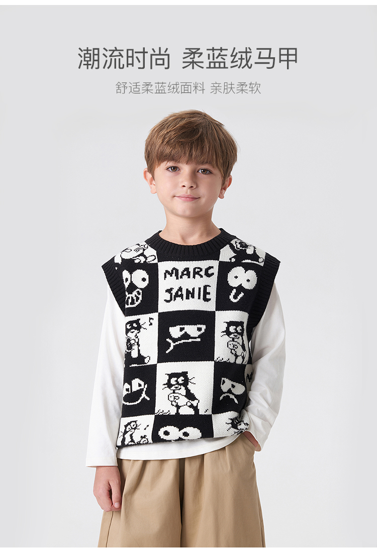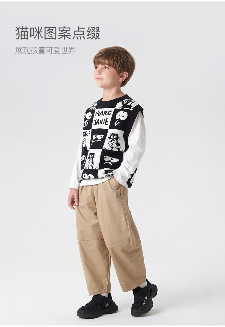 【柔蓝绒】马克珍妮男童猫咪针织马甲 儿童背心春秋款上衣231309