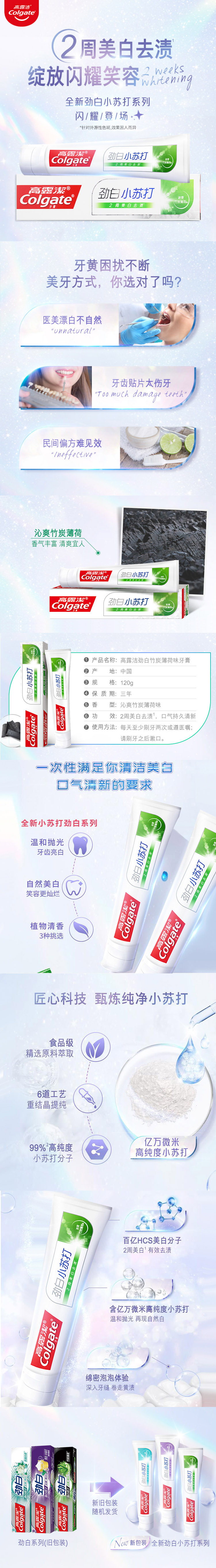 高露洁劲白竹炭薄荷牙膏120克-新包装