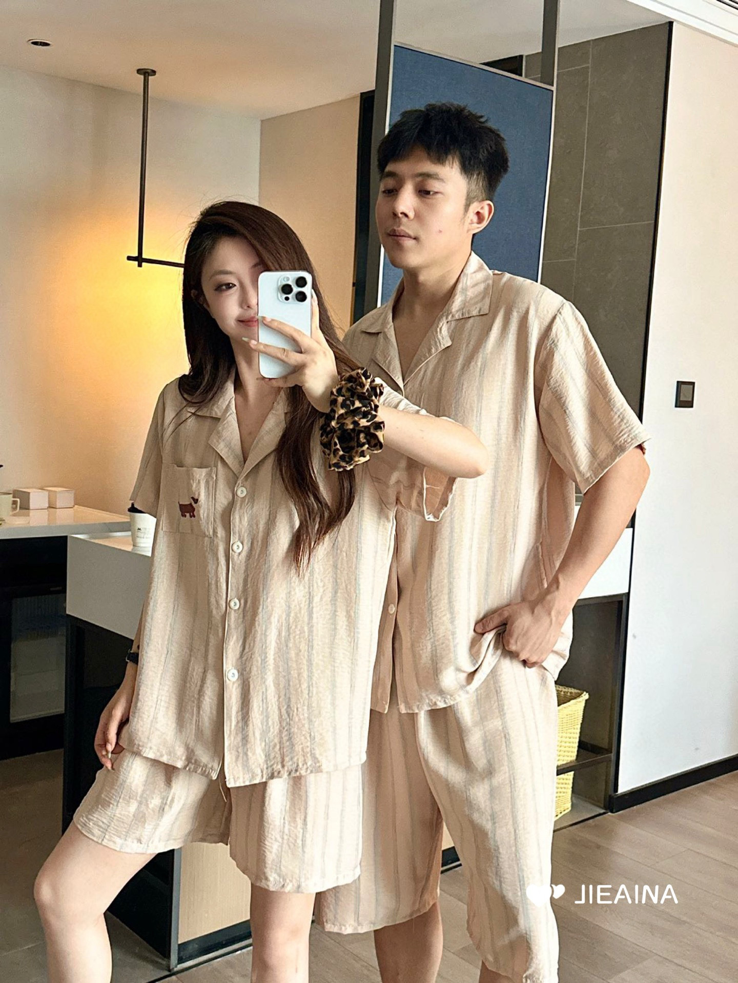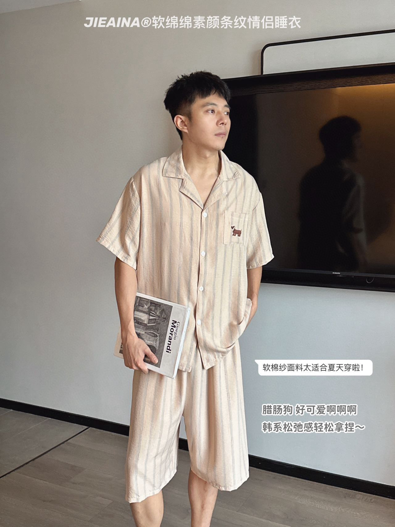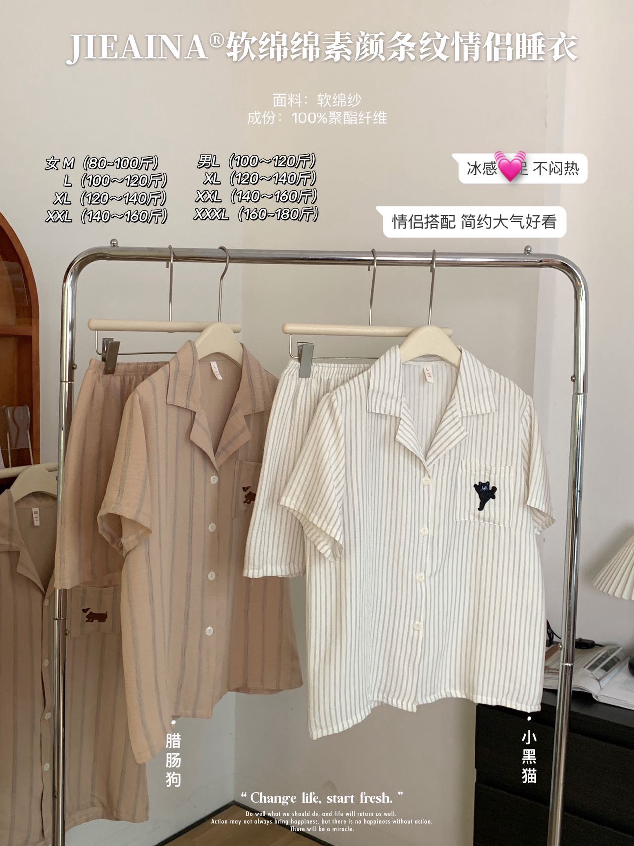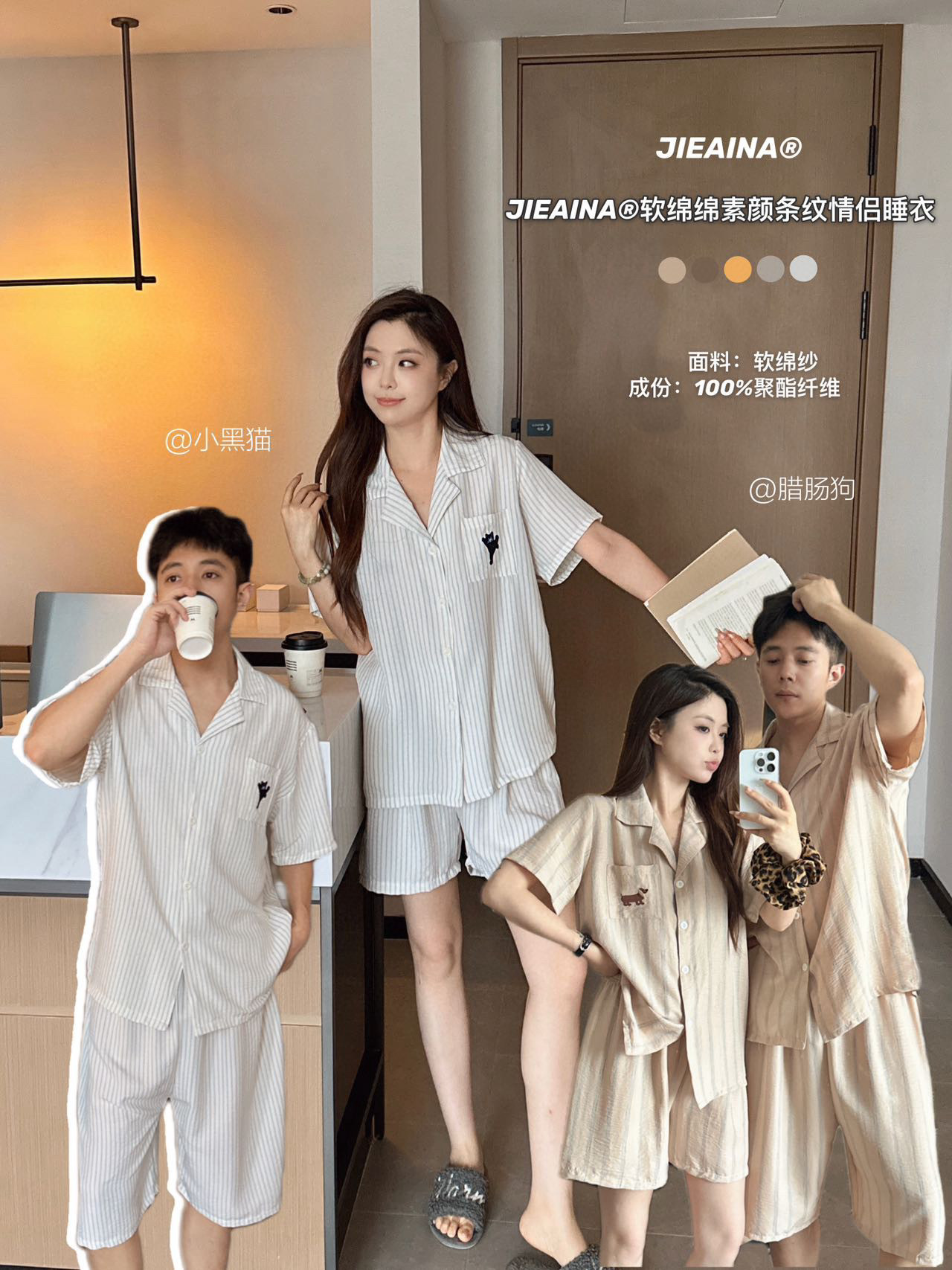 【GZ】无忧购软绵绵素颜条纹情侣睡衣家居服套装(截单后3-5天发货)