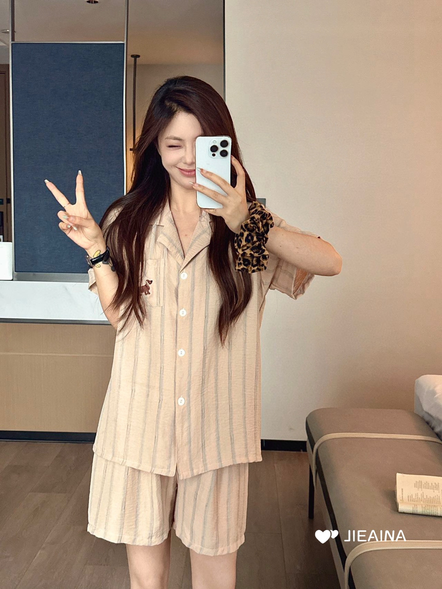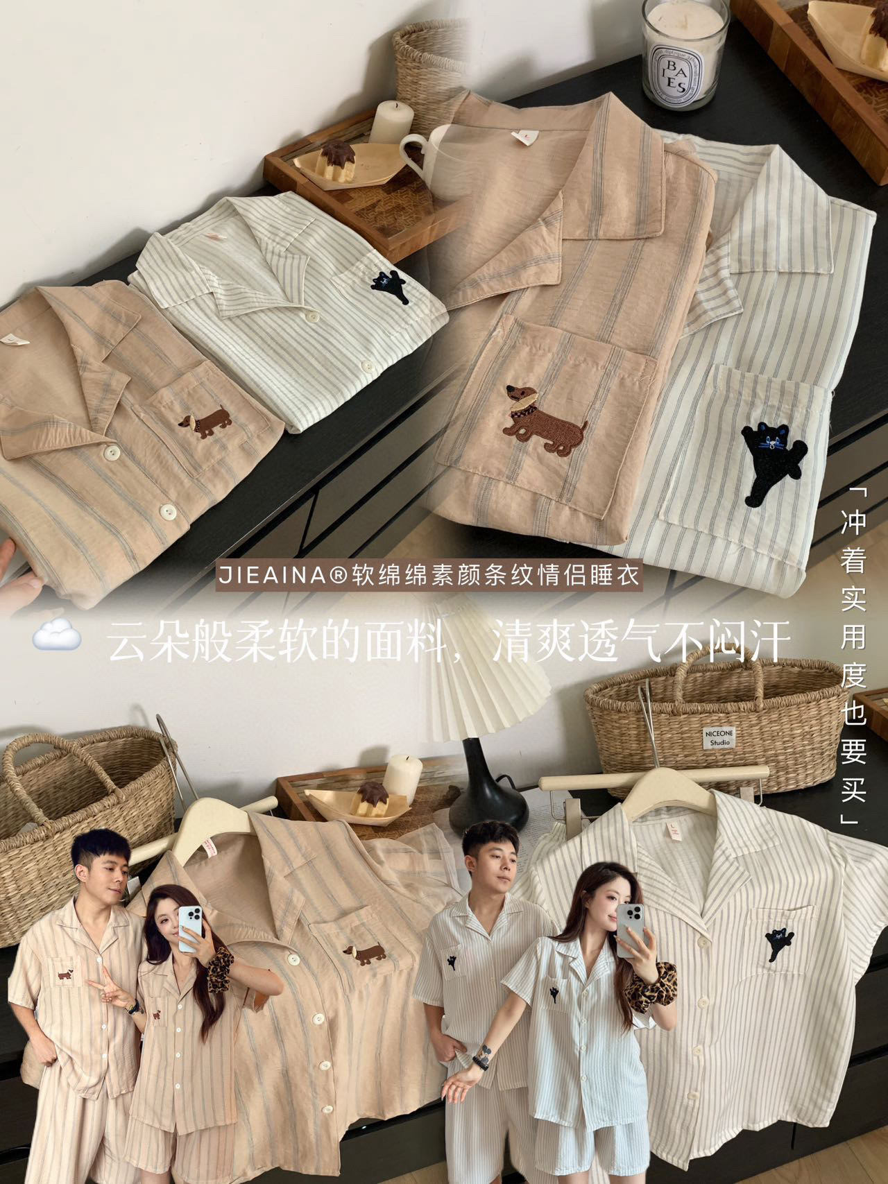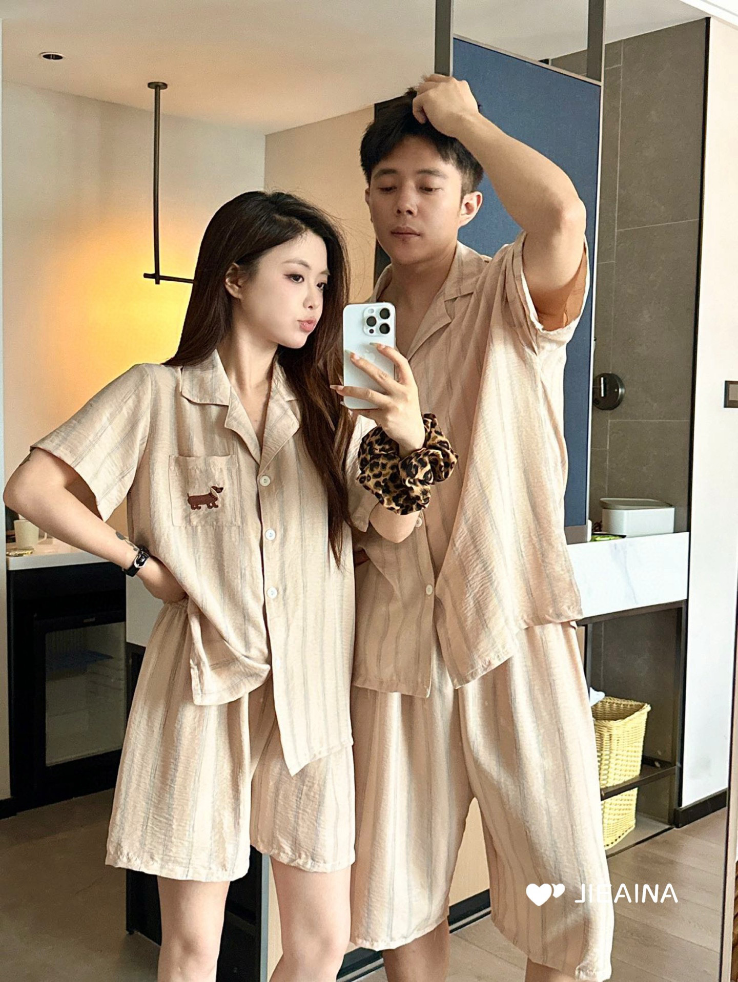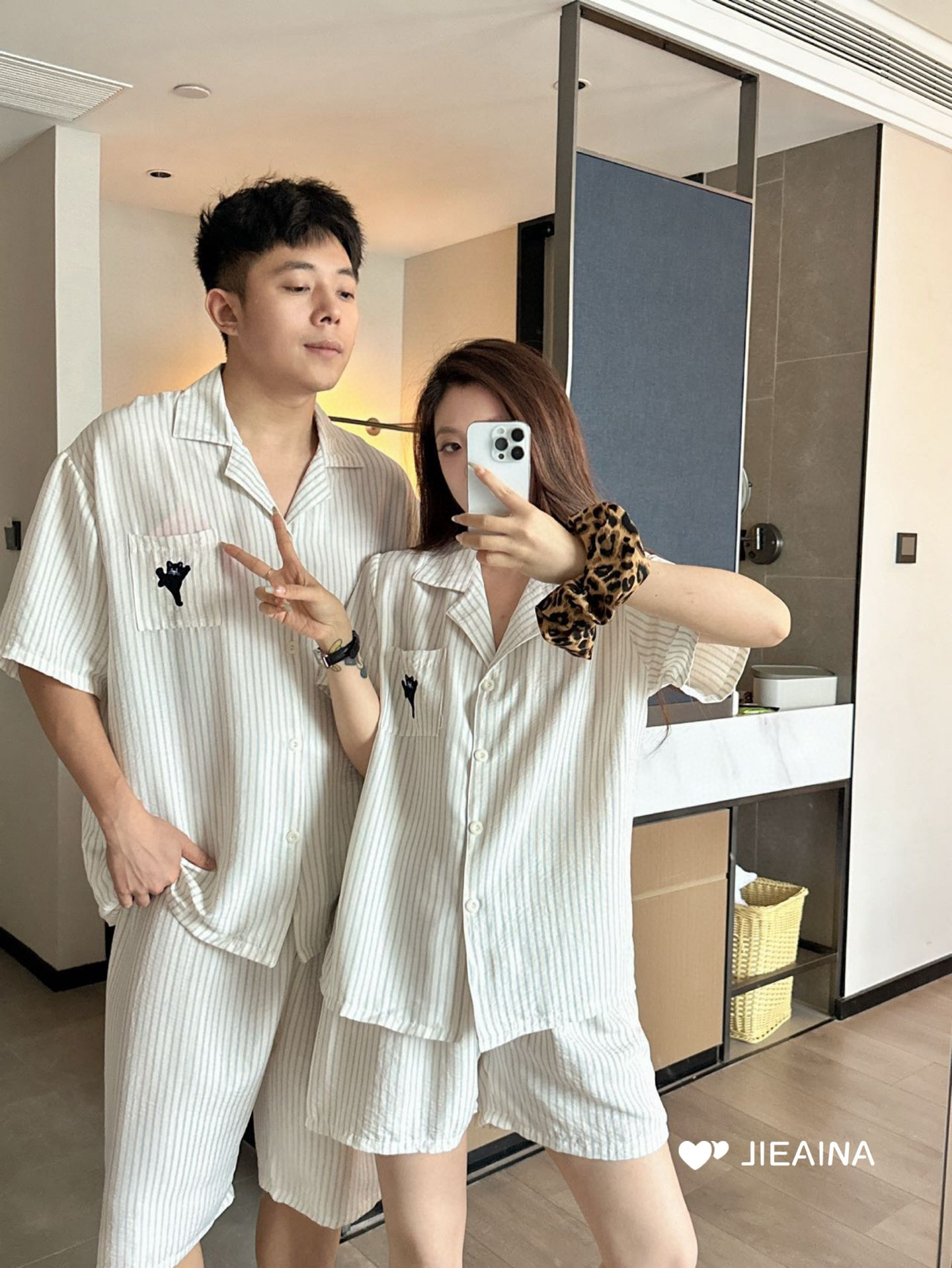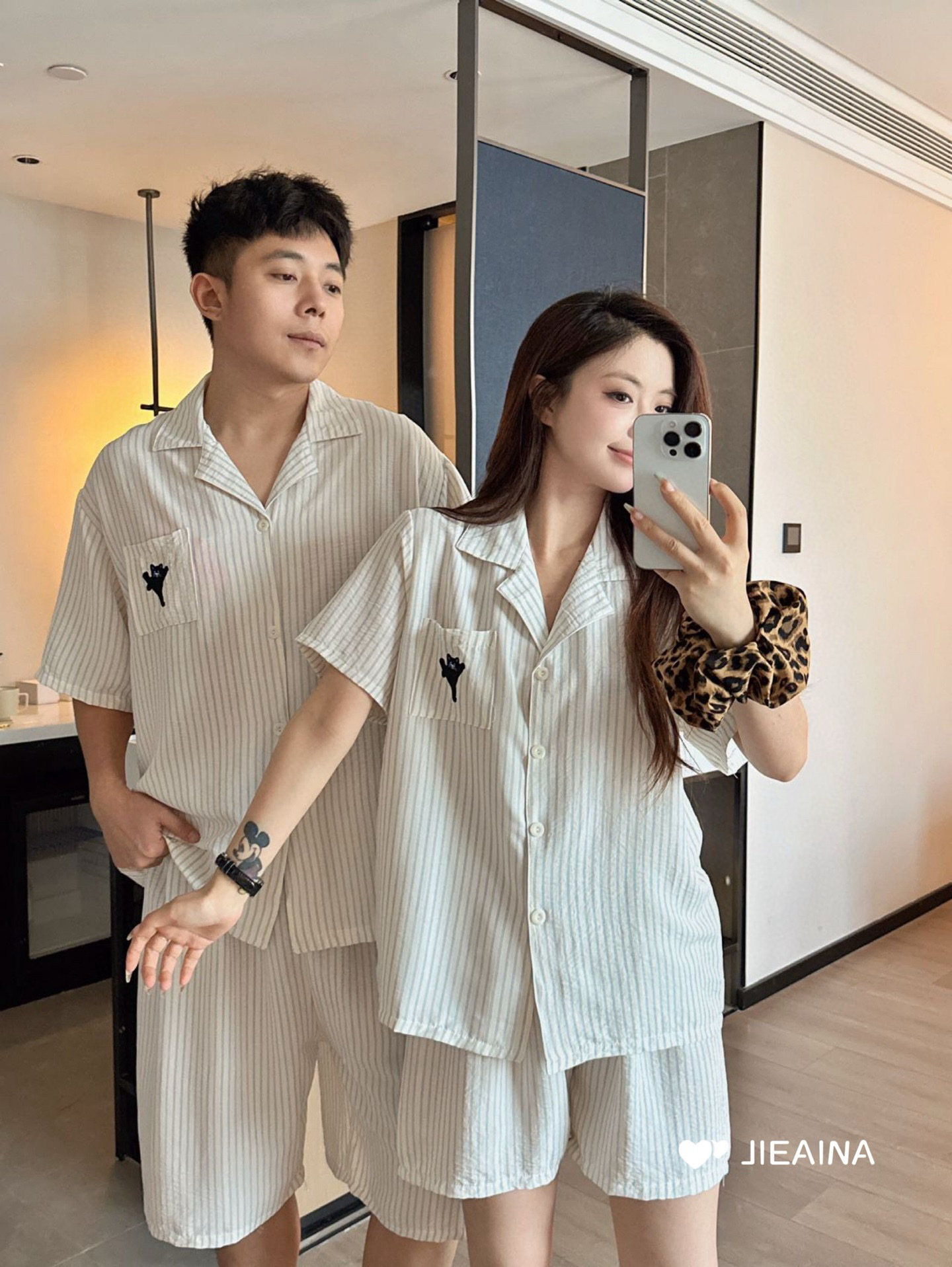 【GZ】无忧购软绵绵素颜条纹情侣睡衣家居服套装(截单后3-5天发货)