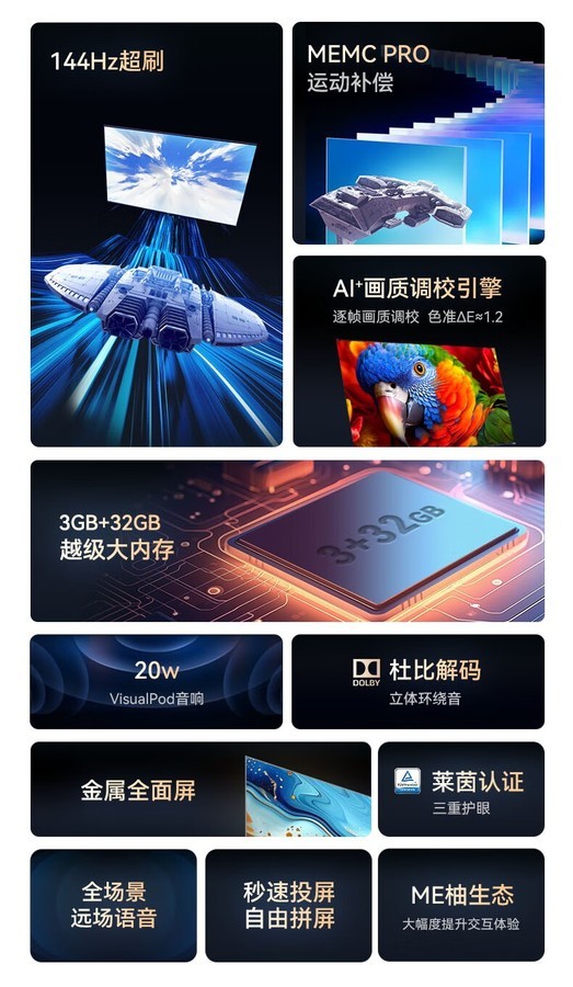 康佳(KONKA)电视 75吋 75M5E 3+64G 远场语音 MEMC 144Hz 30W音响912882