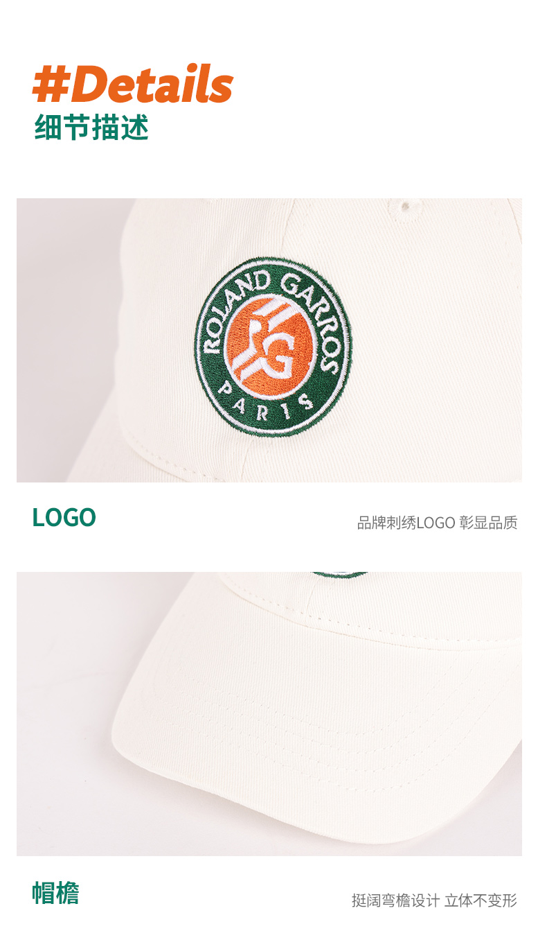 罗兰加洛斯棒球帽男女日常通勤网球户外运动休闲鸭舌帽遮阳吸汗