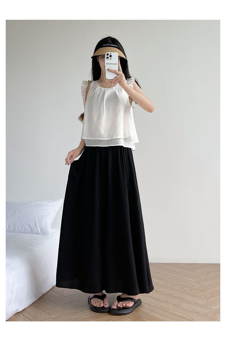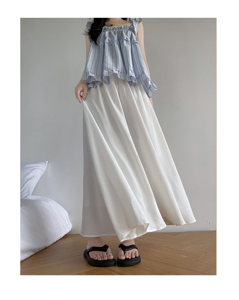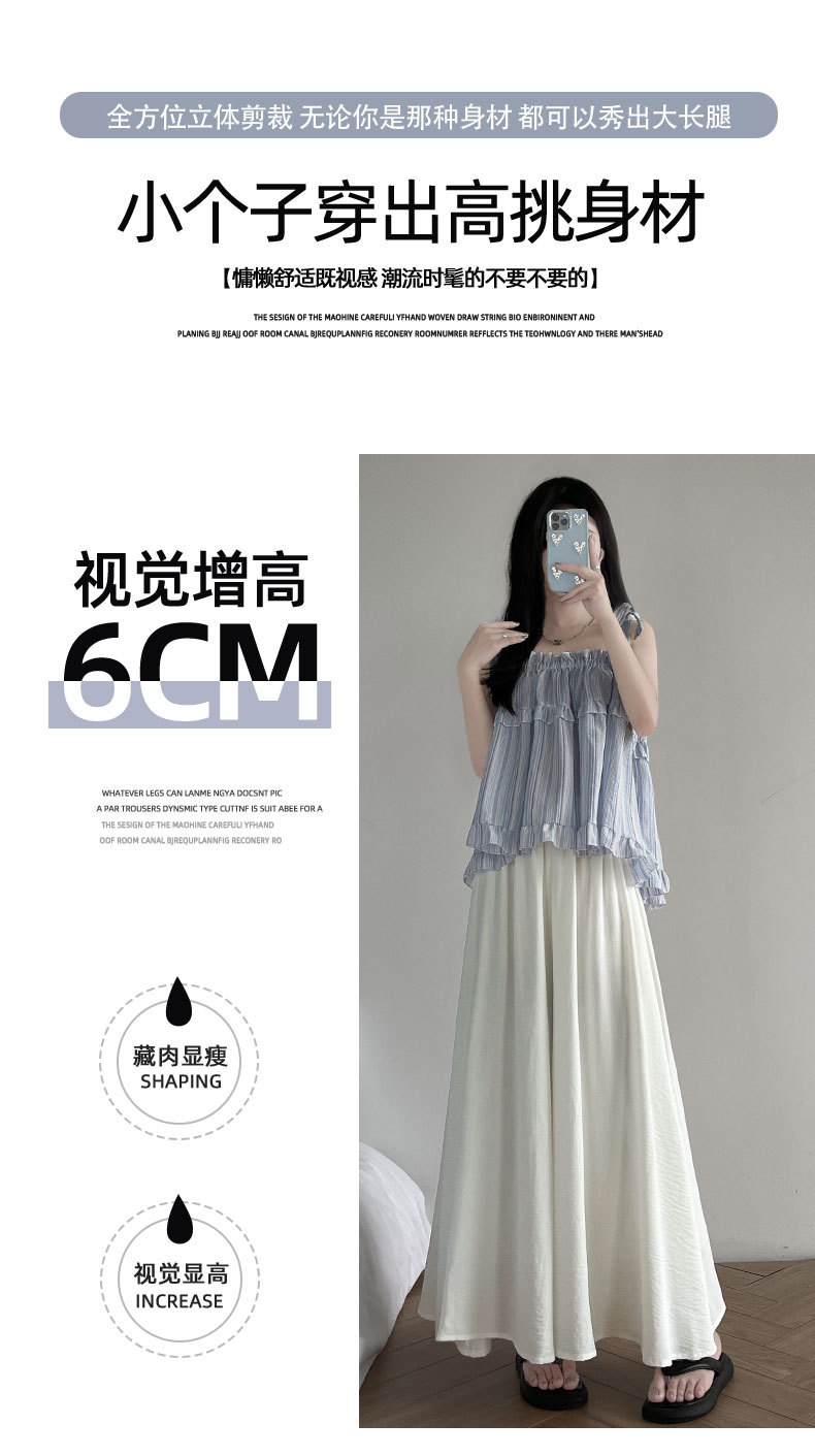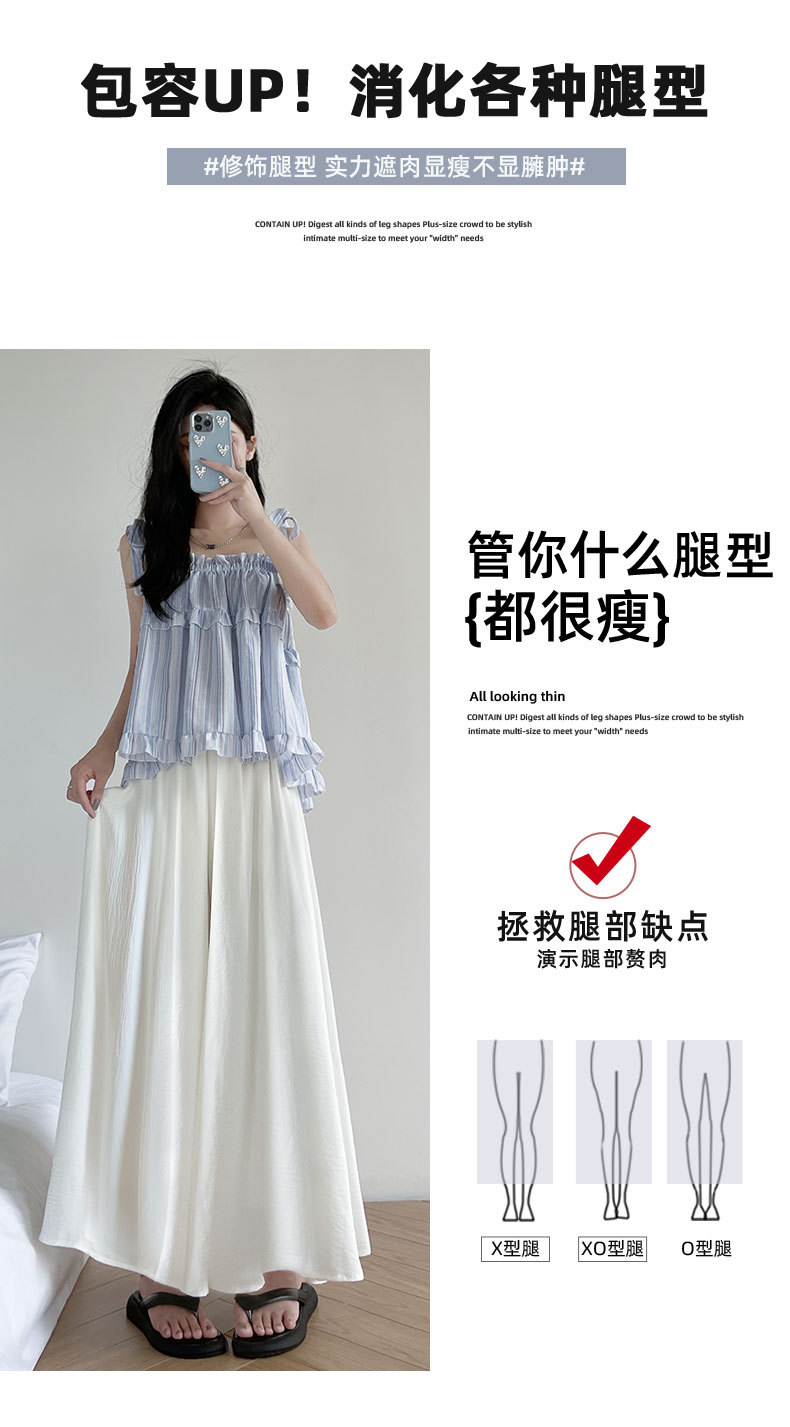 「三色可选!夏日褶皱半身裙」白色裙裤女夏天薄款冰丝小个子飘飘百褶a字半身裙高腰垂感阔腿裤下装