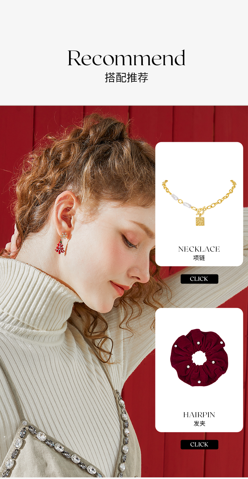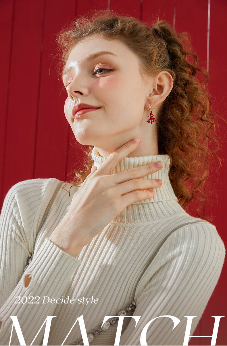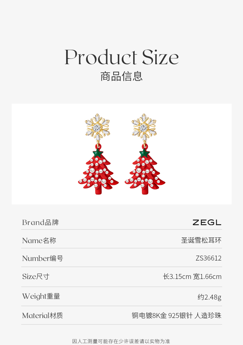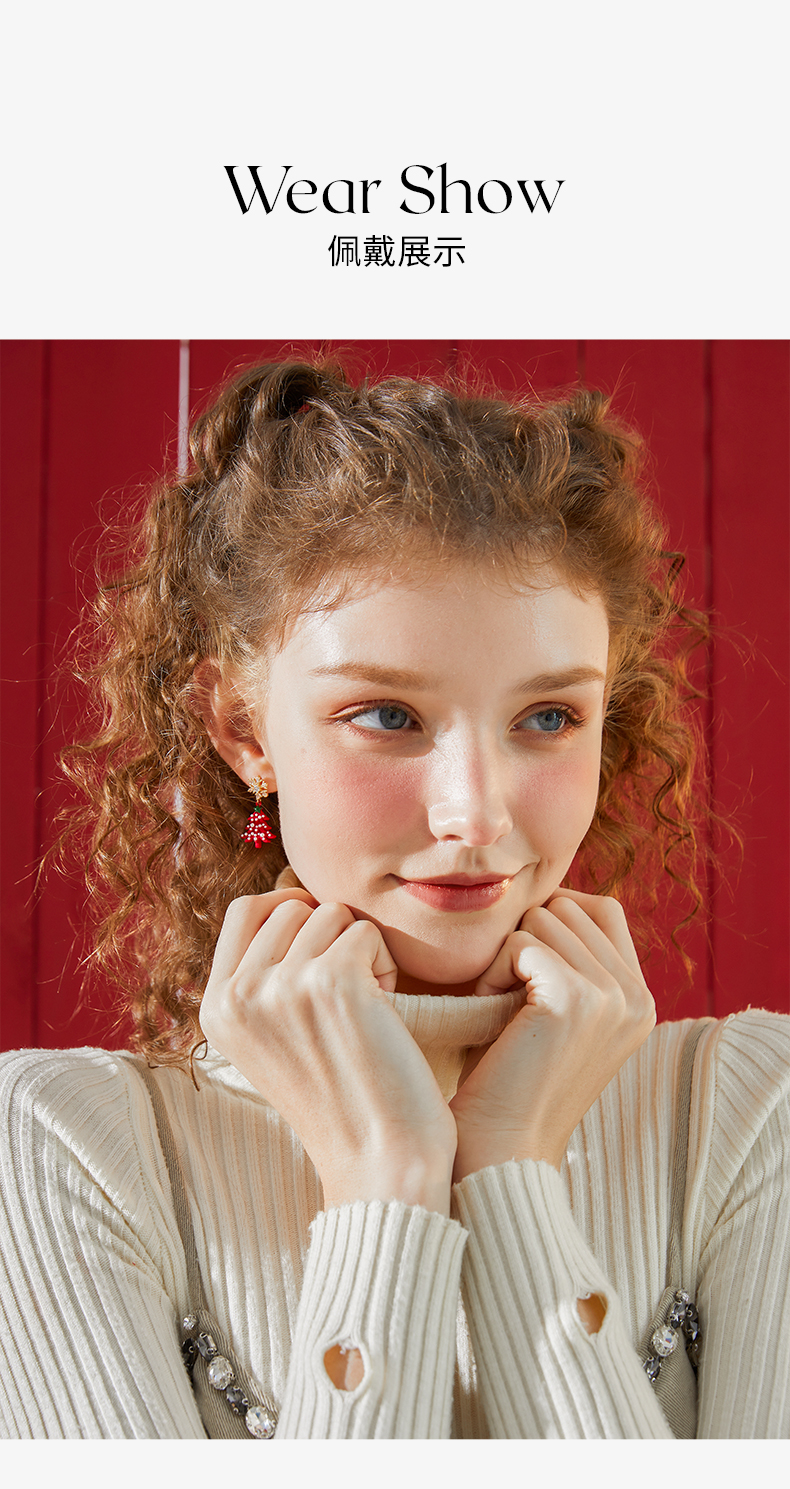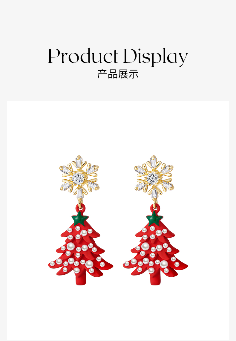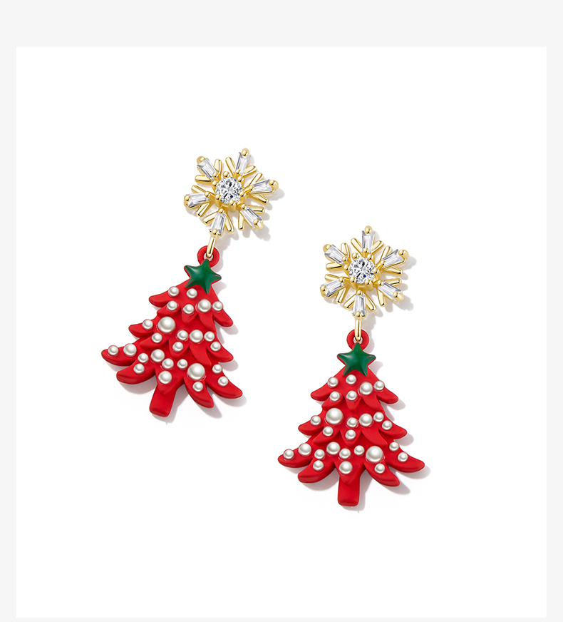 ZEGL雪花圣诞树耳环女2022年新款秋冬耳钉耳扣小众设计感红色耳饰