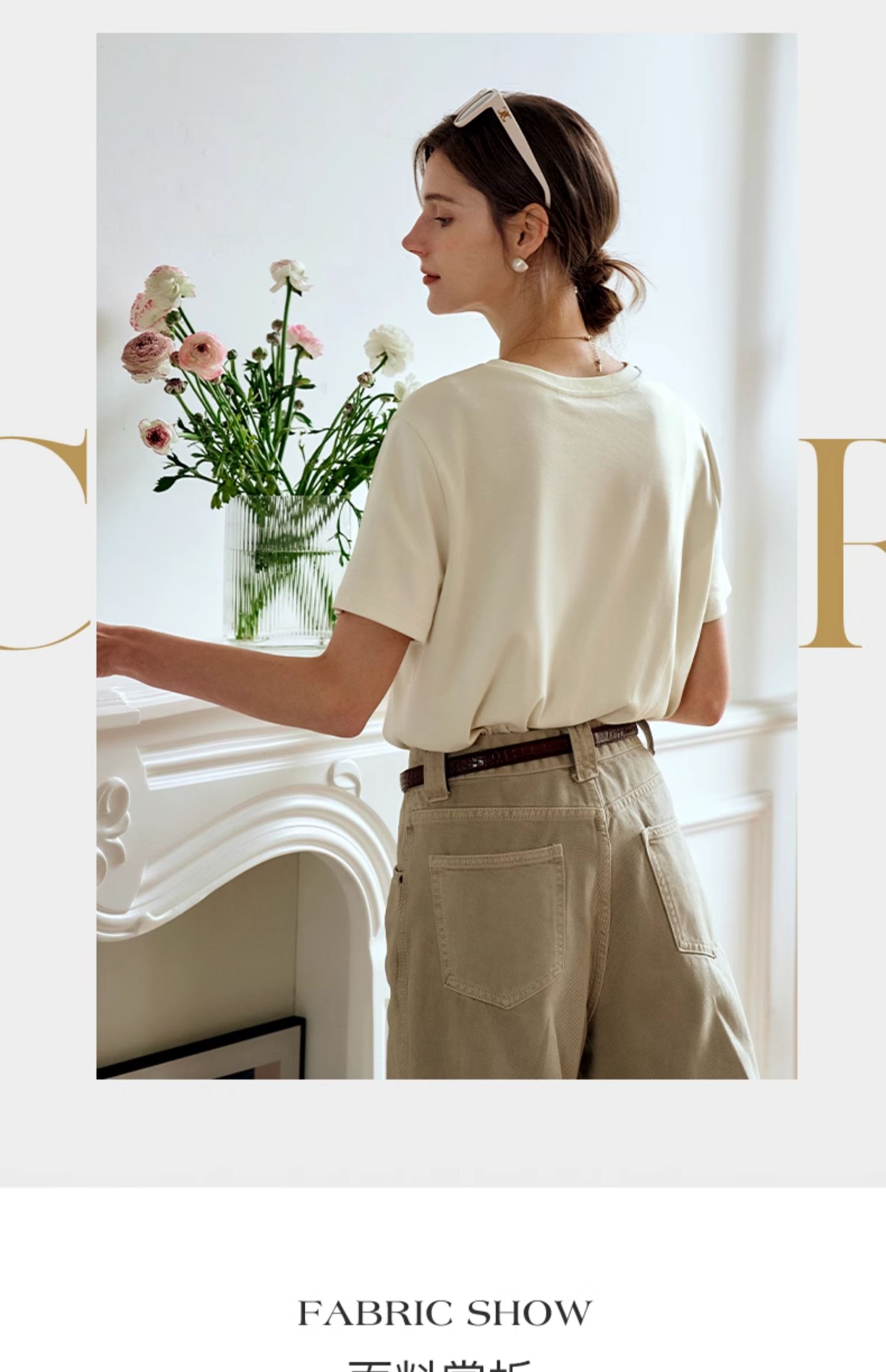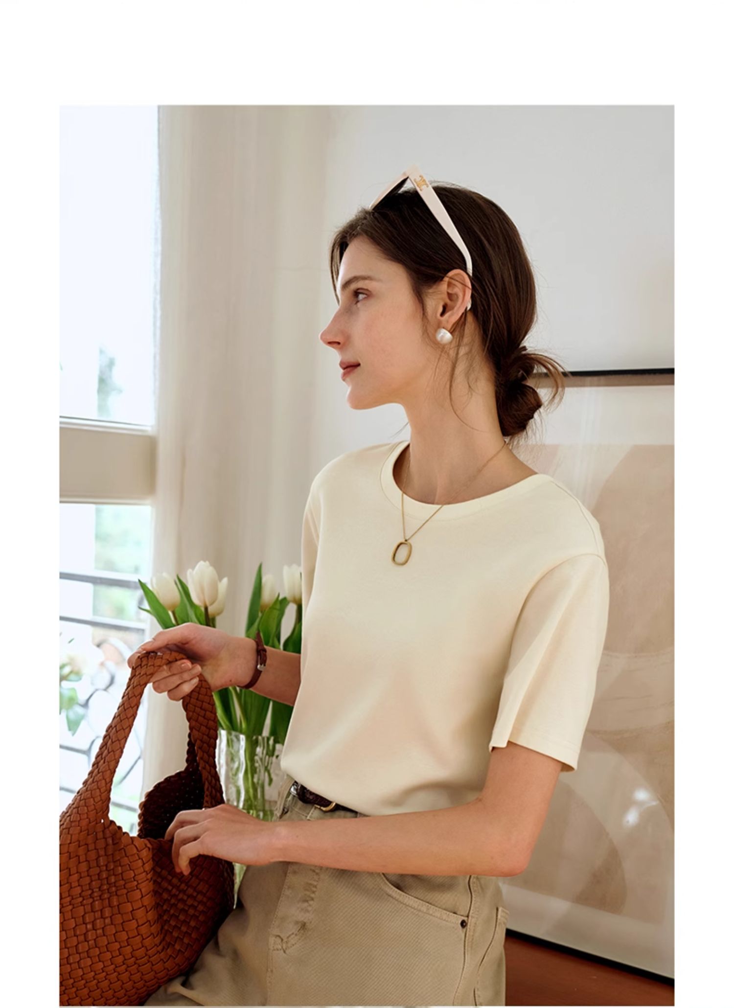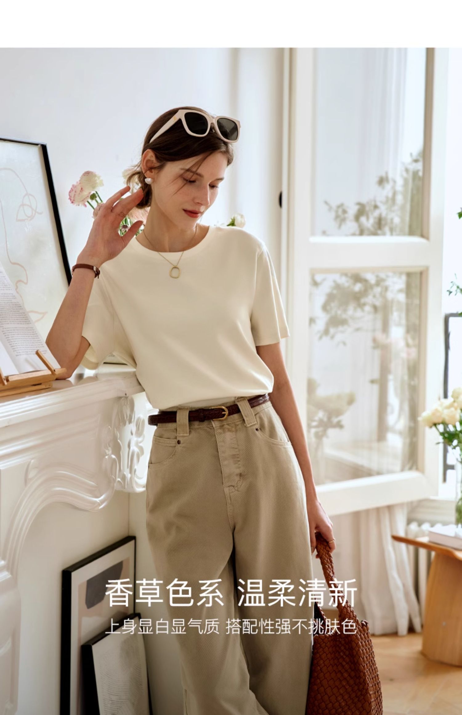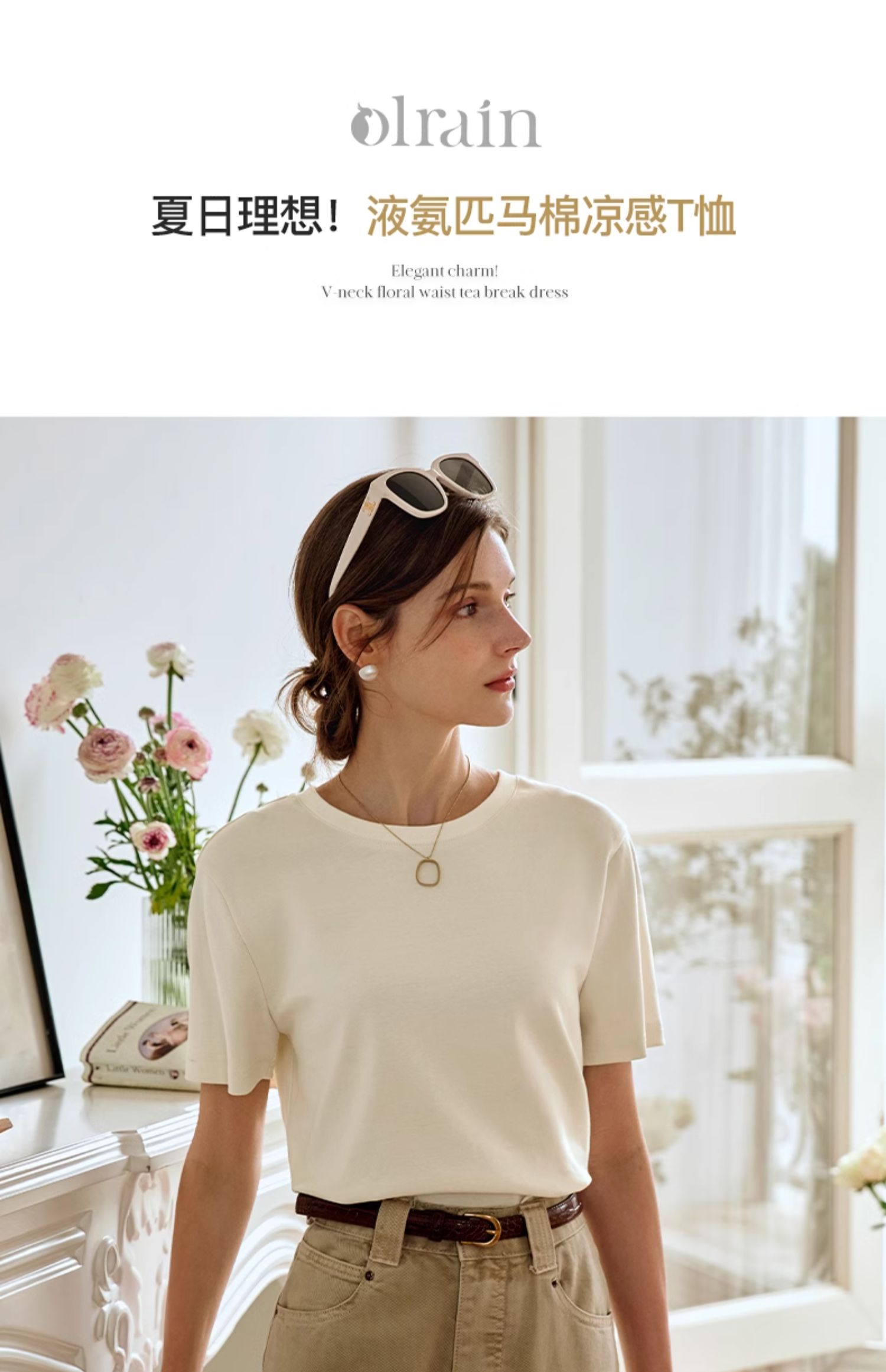 OLrain欧芮儿香草色短袖T恤女夏季2024年新款高级百搭宽松上衣
