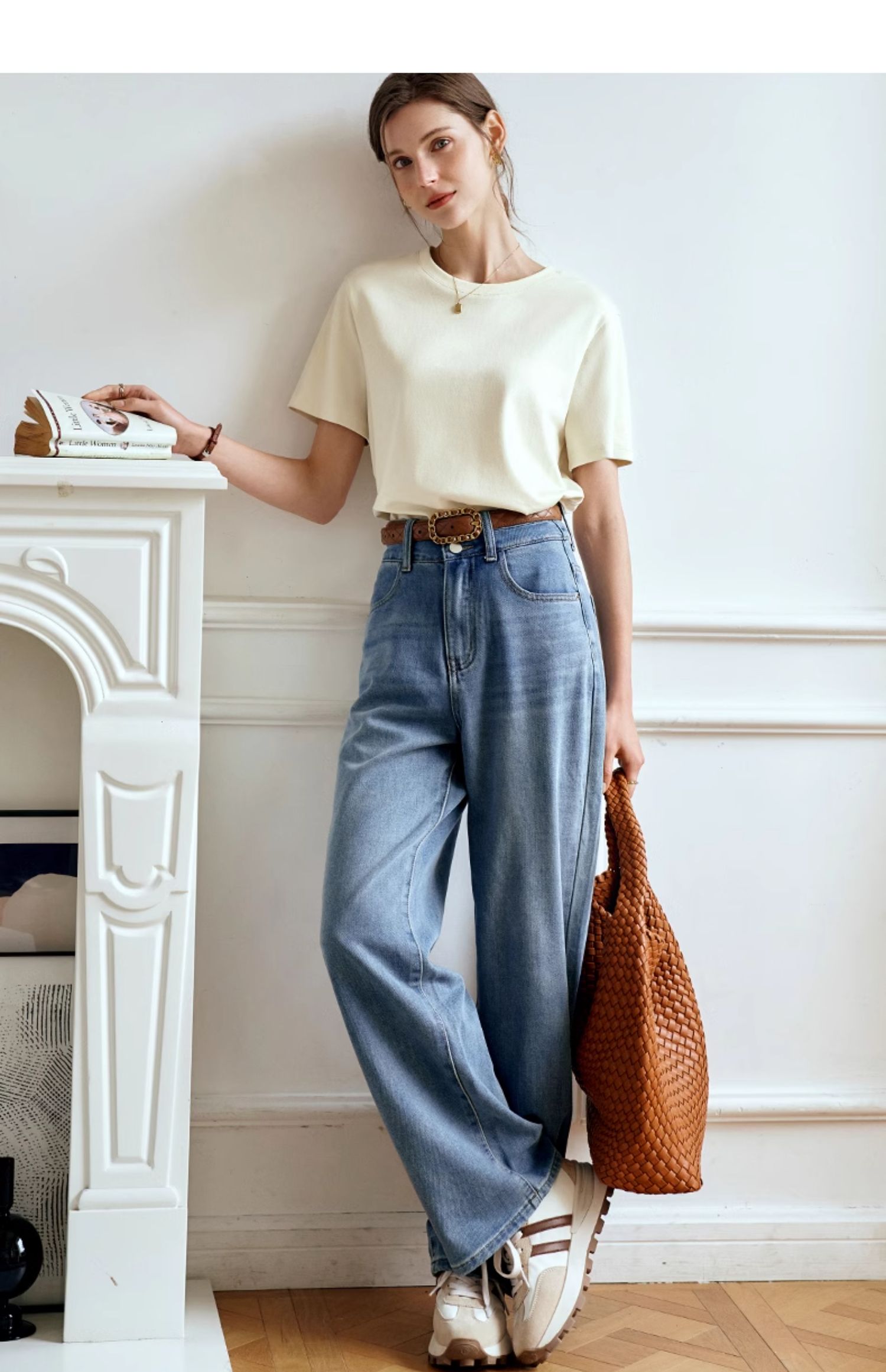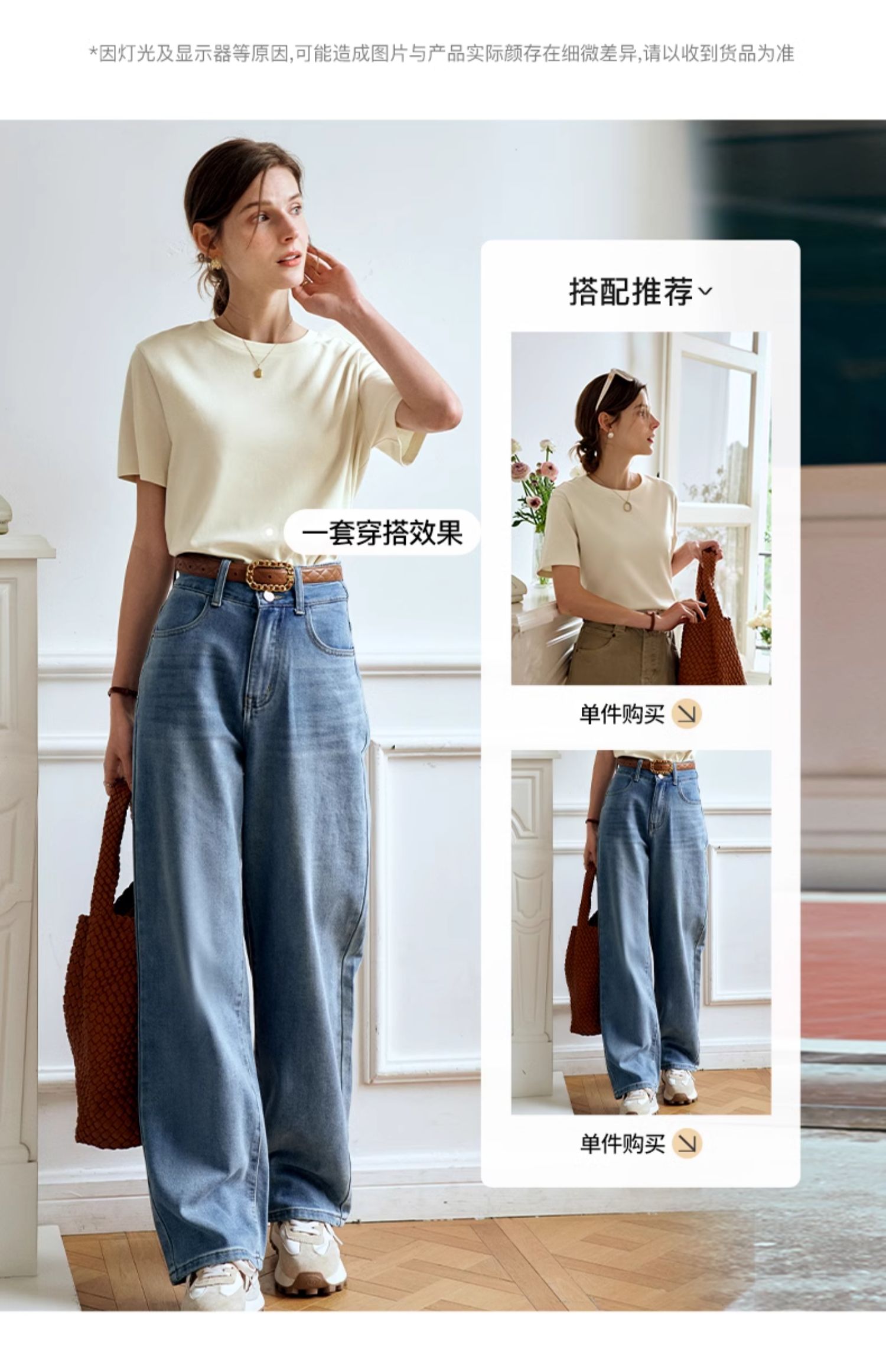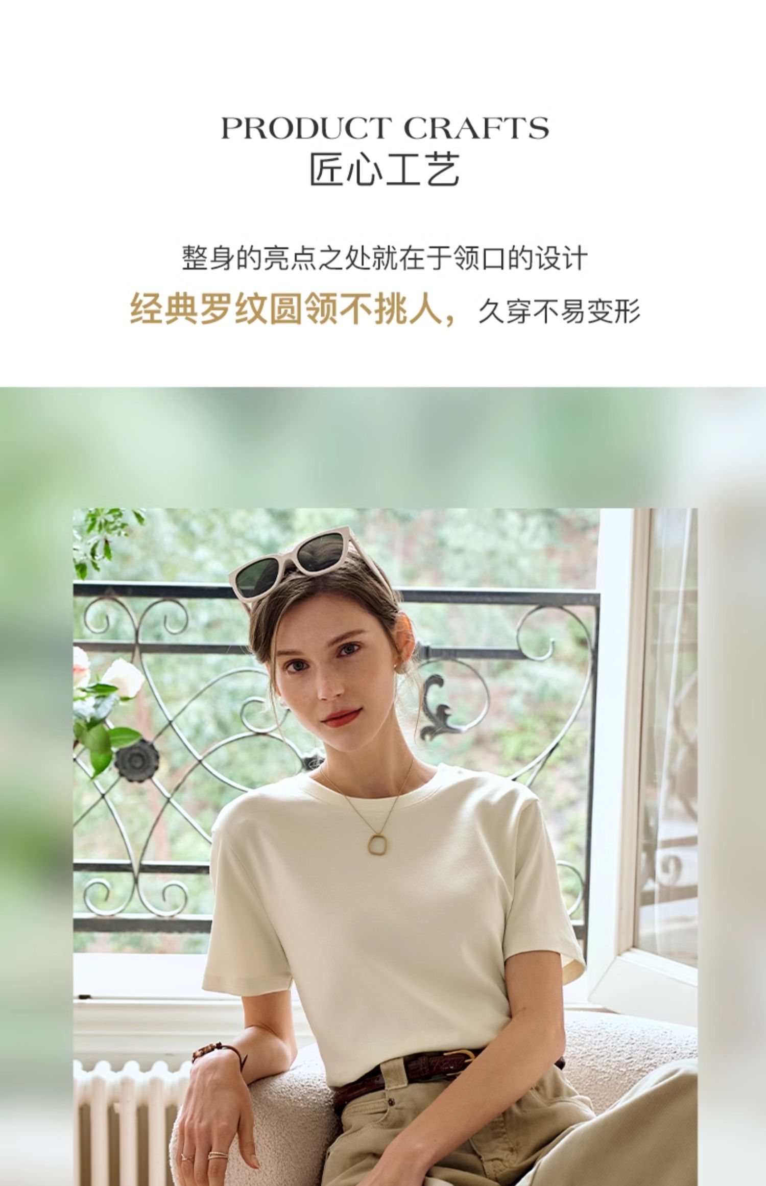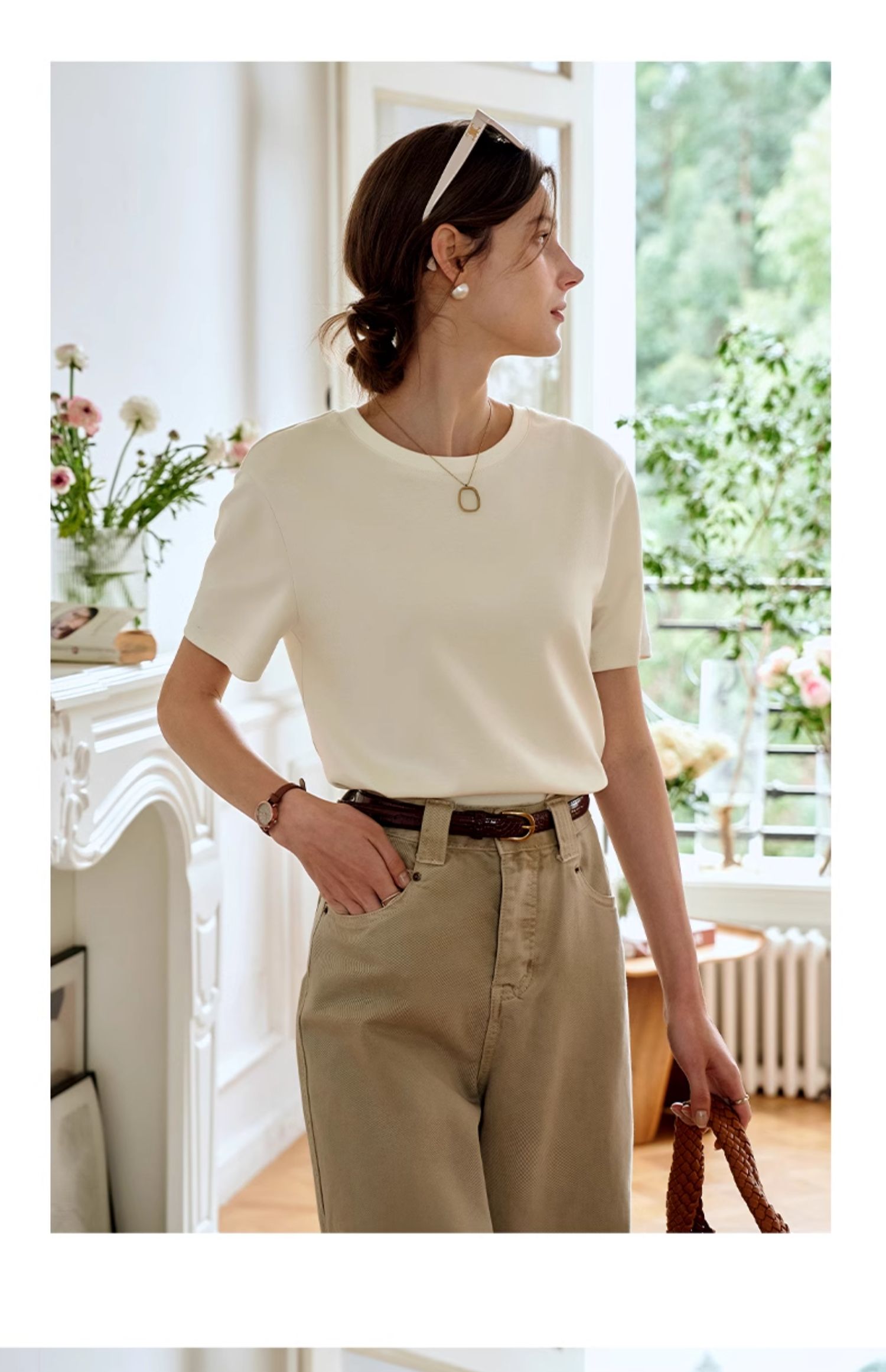 OLrain欧芮儿香草色短袖T恤女夏季2024年新款高级百搭宽松上衣